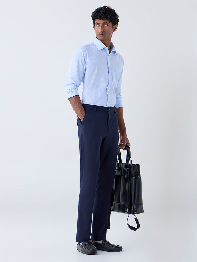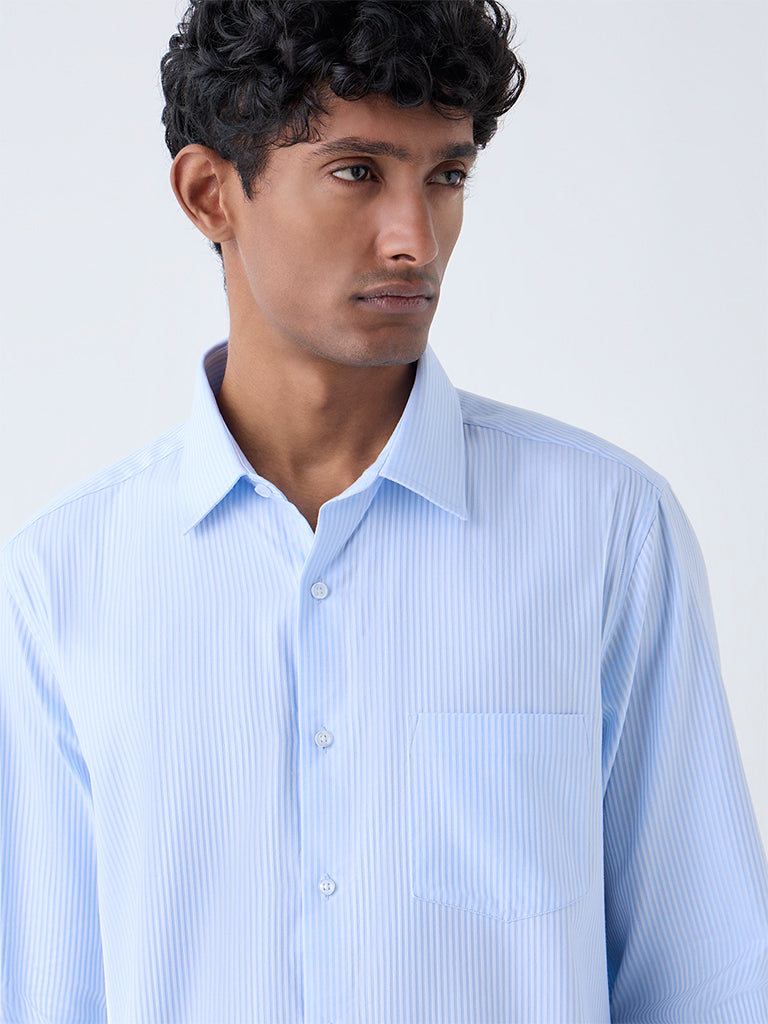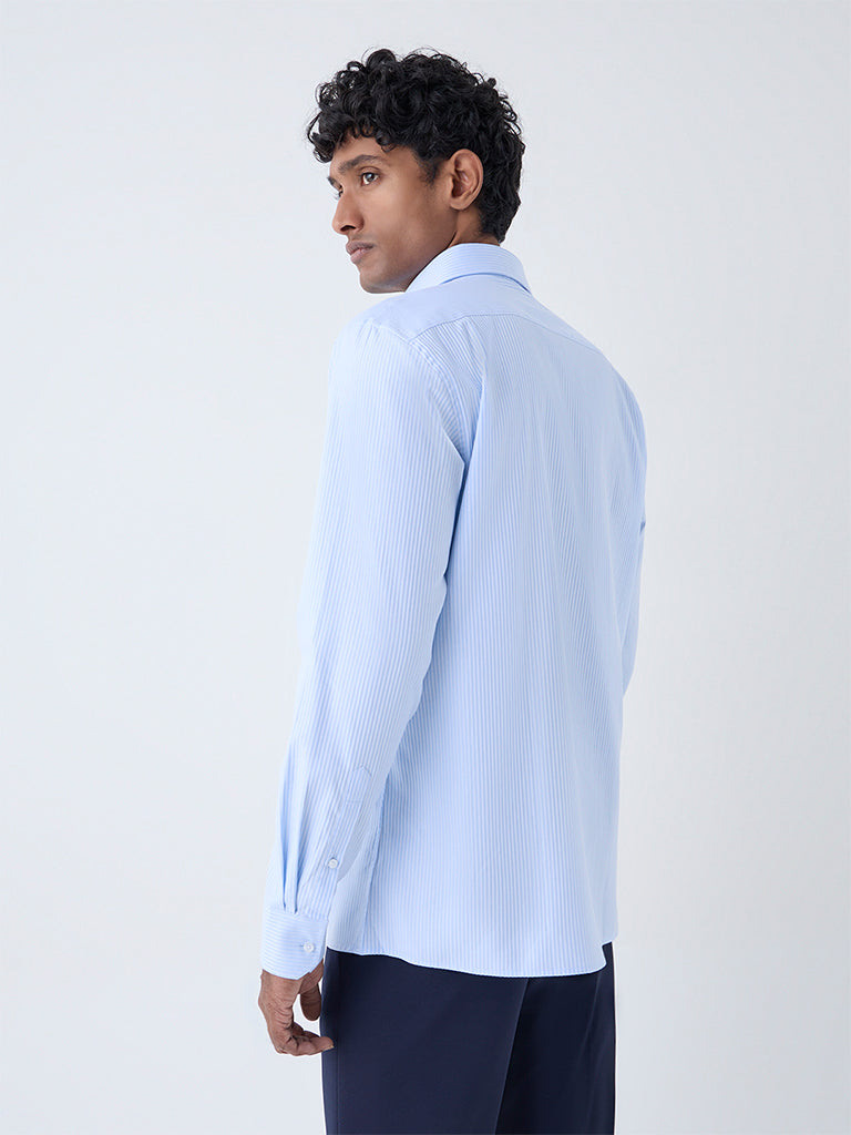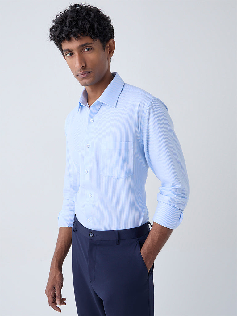 WES Formals Blue Striped Slim-Fit Cotton Shirt