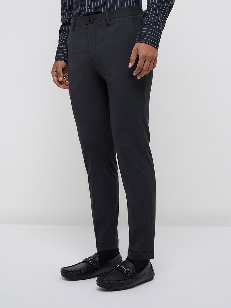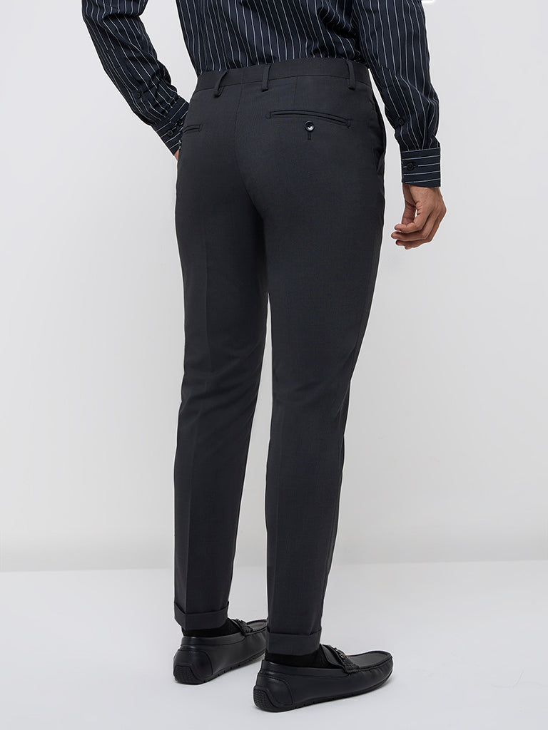 WES Formals Charcoal Carrot-Fit Mid-Rise Trousers