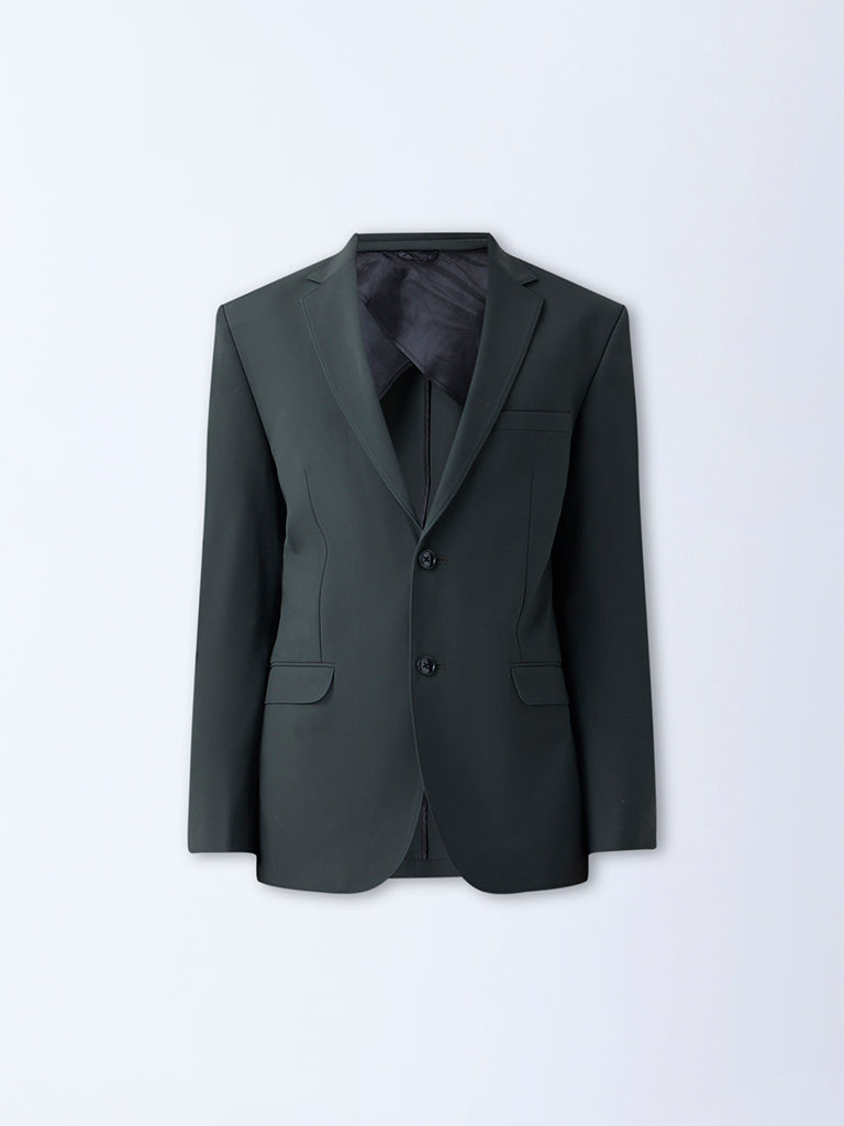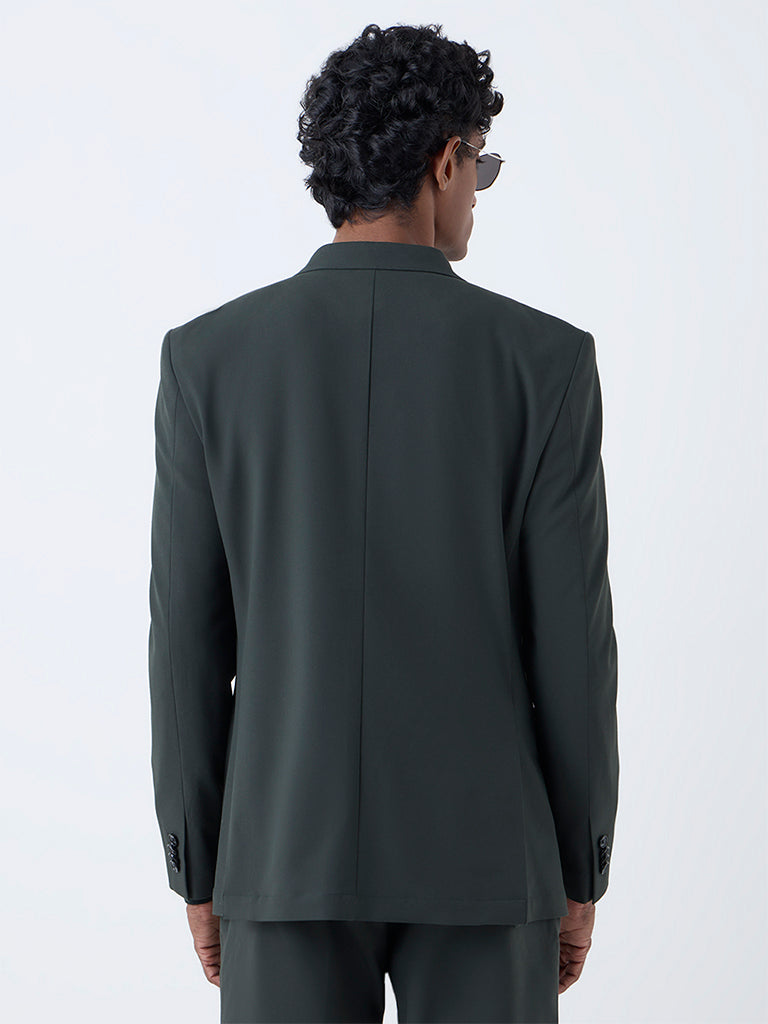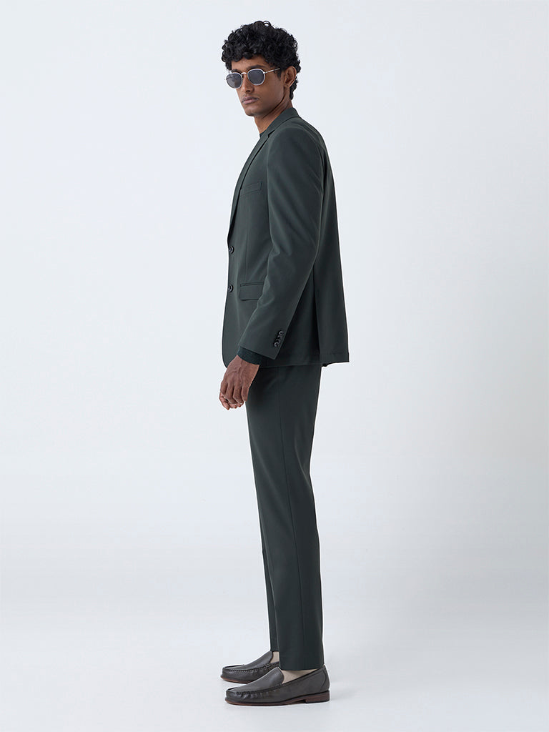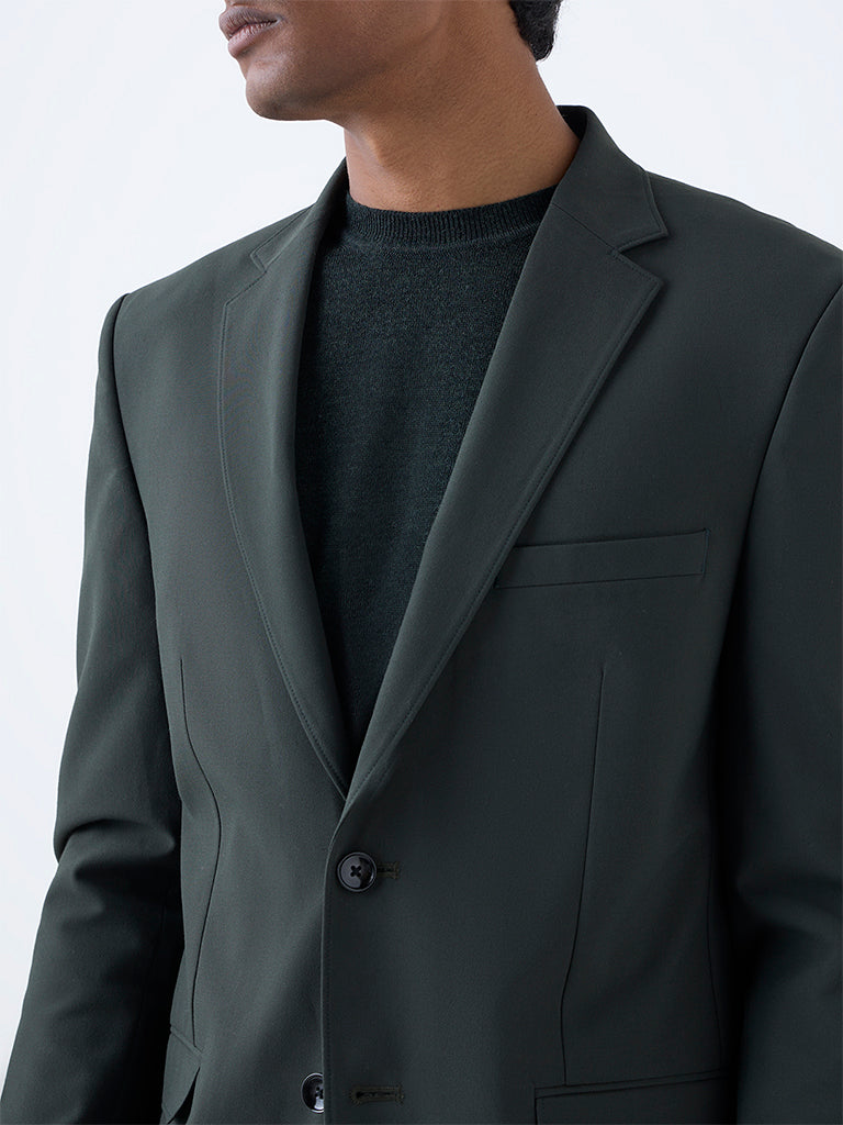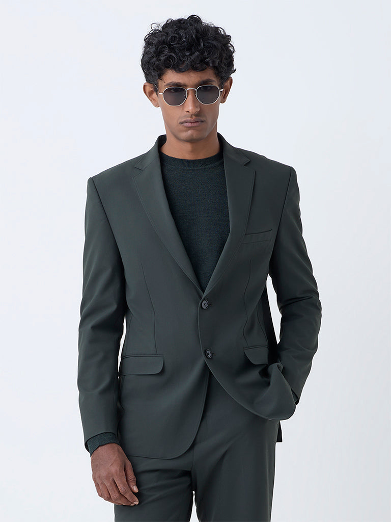 WES Formals Dark Green Solid Slim-Fit Blazer