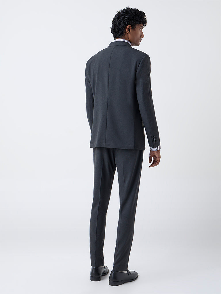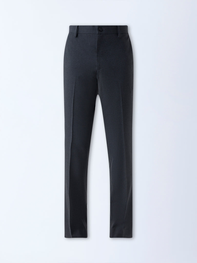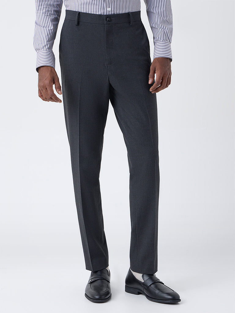WES Formals Dark Grey Slim-Fit Mid-Rise Trousers