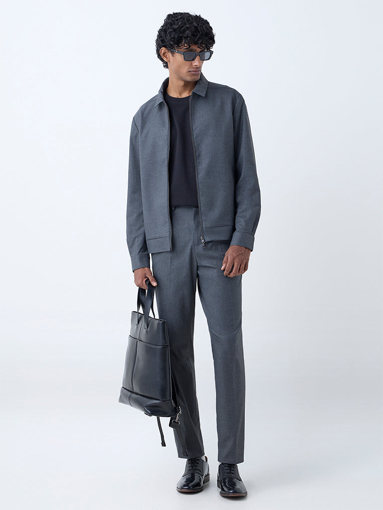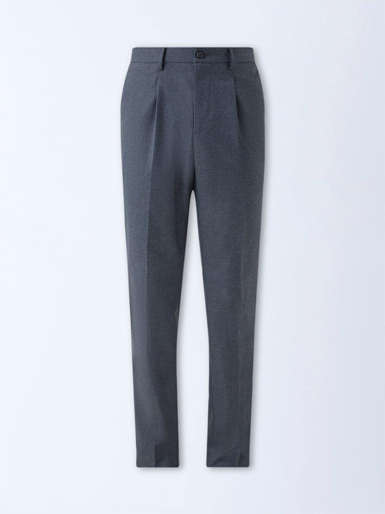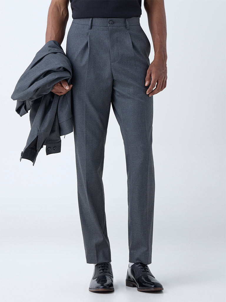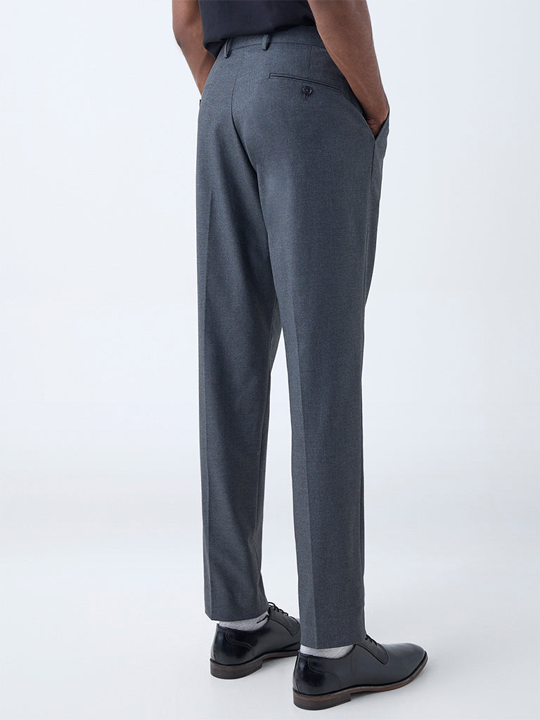 WES Formals Dark Grey Slim-Fit Mid-Rise Trousers