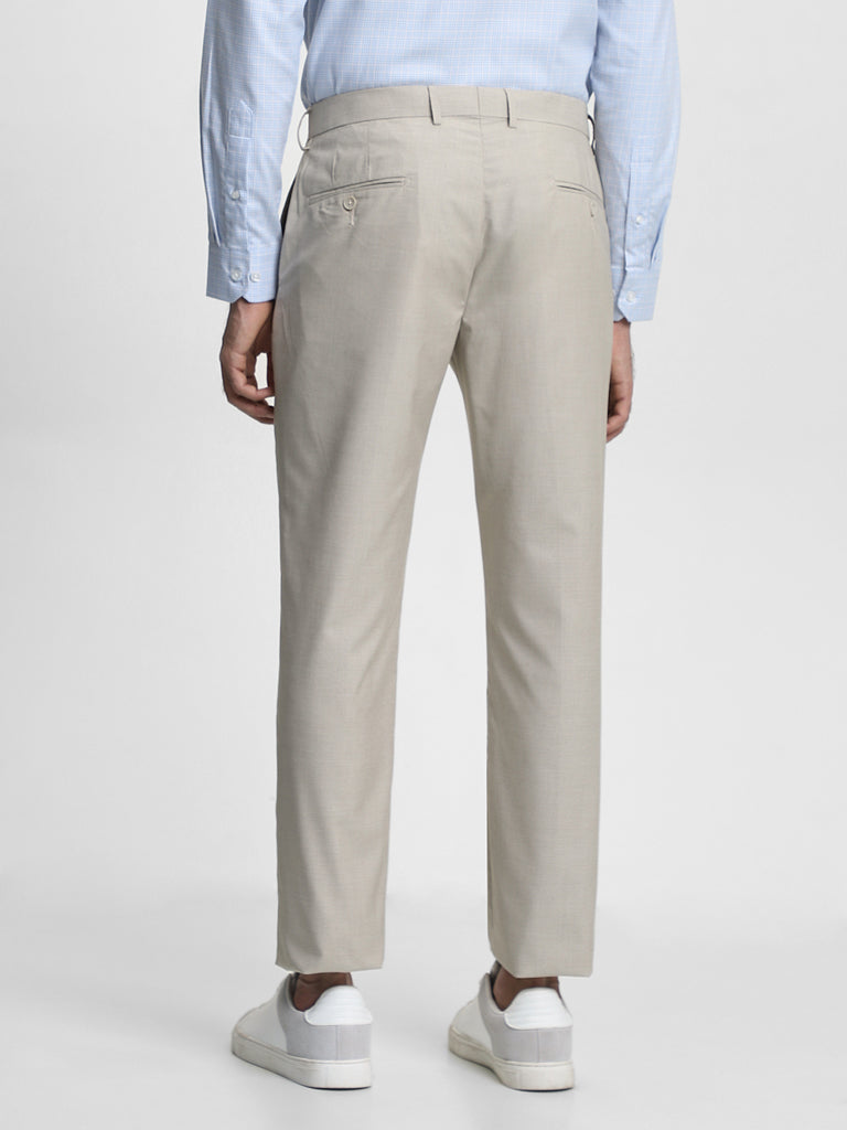 WES Formals Dobby Beige Relaxed-Fit Mid-Rise Trousers