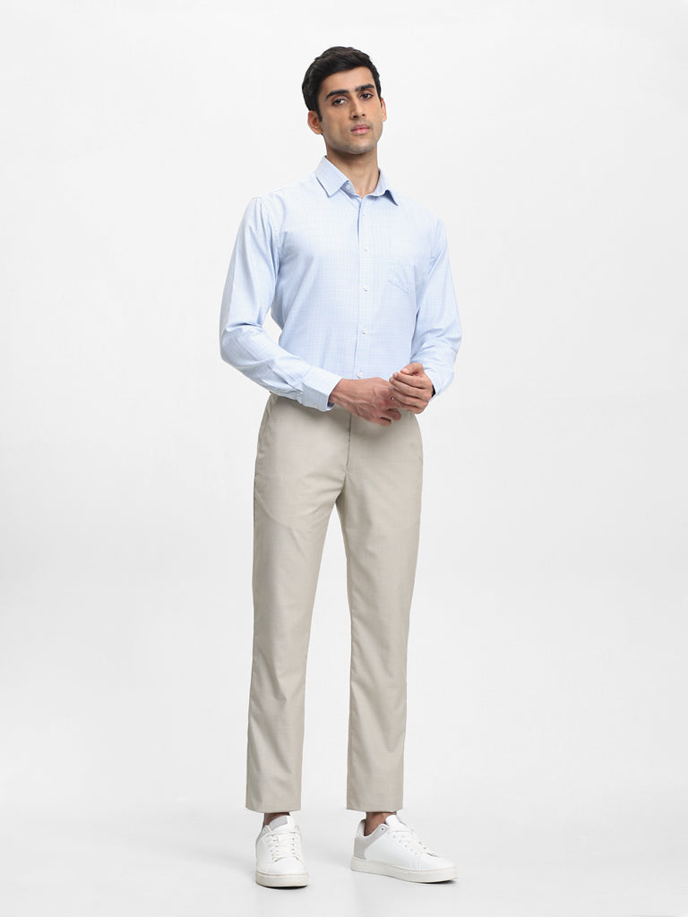 This WES Formals beige colored formal trousers for men features a dobby pattern that adds a touch of elegance to your outfit. It is designed with two side pockets and two back pockets for your convenience.