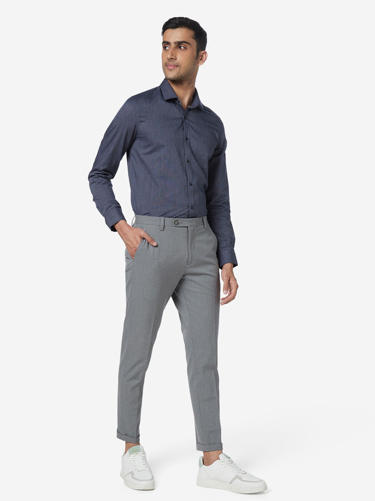 When it comes to the corporate field. nothing beats the charm of solid grey trousers. Designed in a carrot fitting structure. this mid-waist WES Formals pair has five handy pockets and comes with a double button-and-zippered fly.