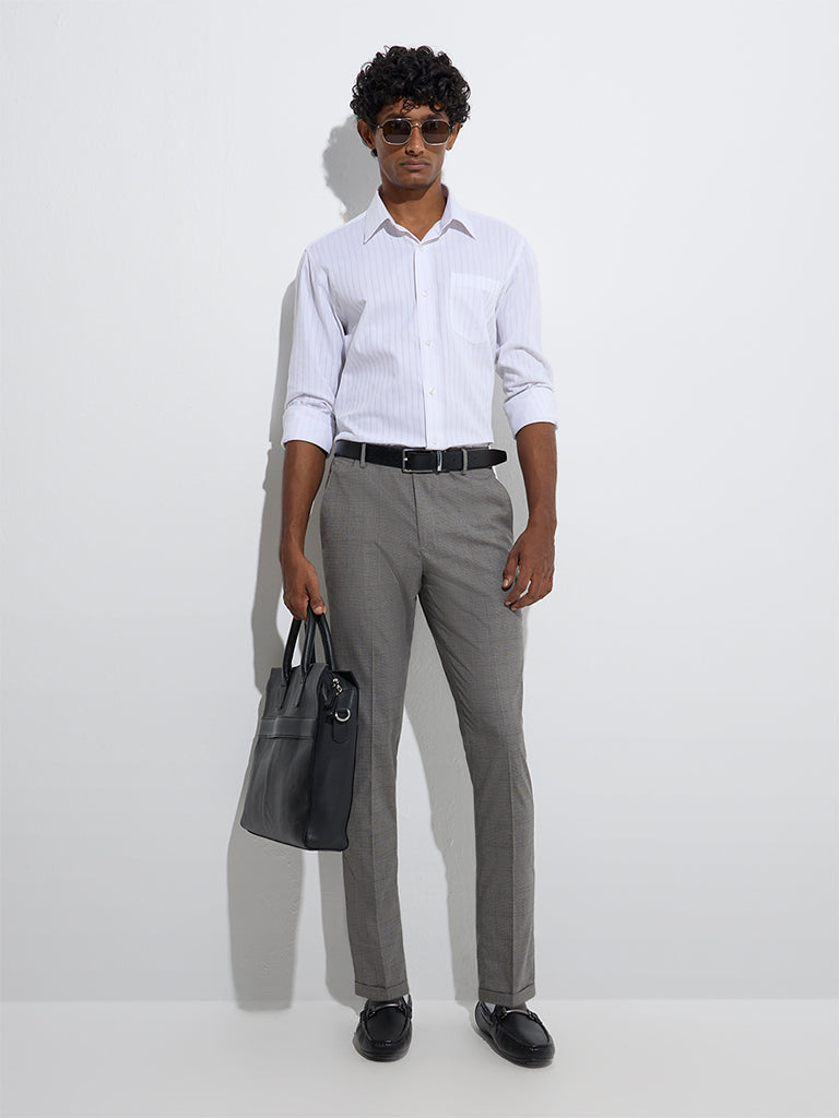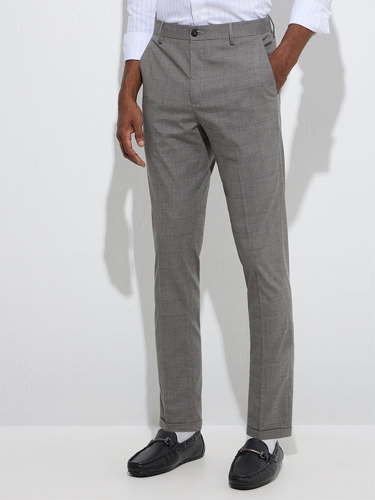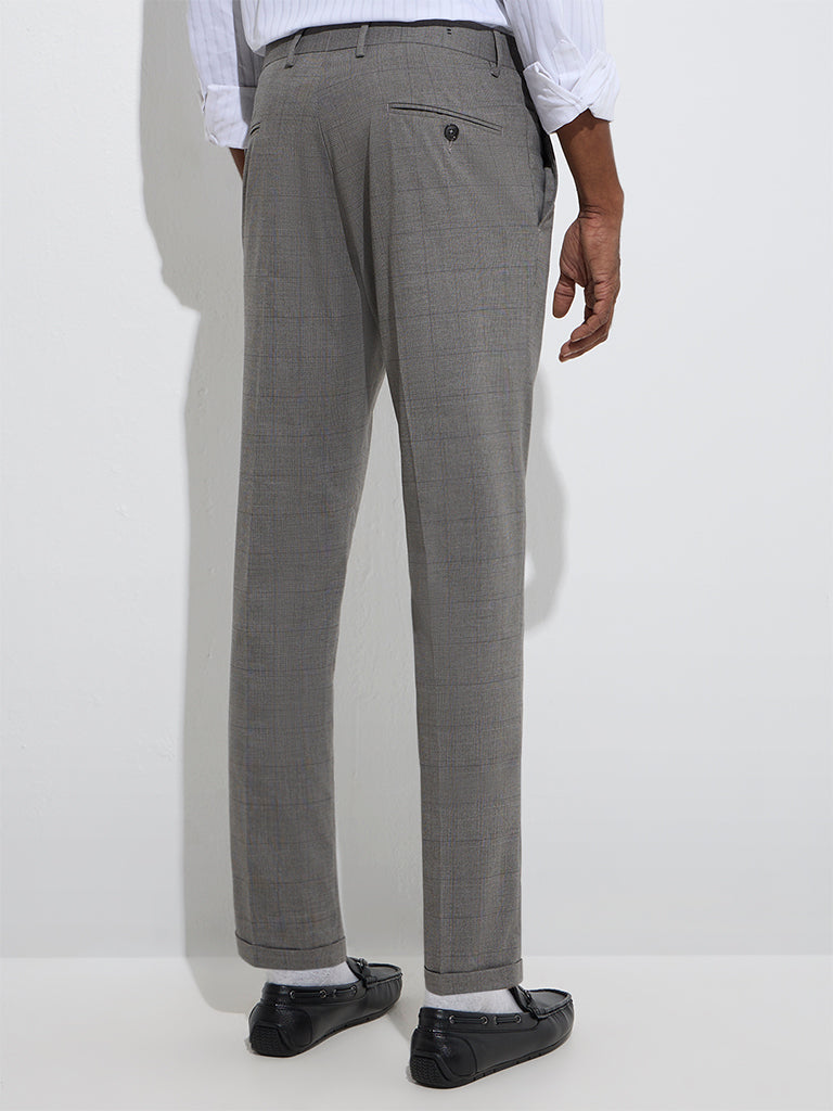 WES Formals Grey Checkered Relaxed-Fit Mid-Rise Trousers