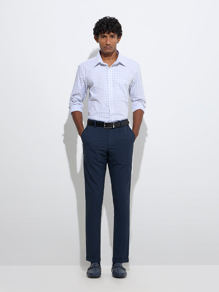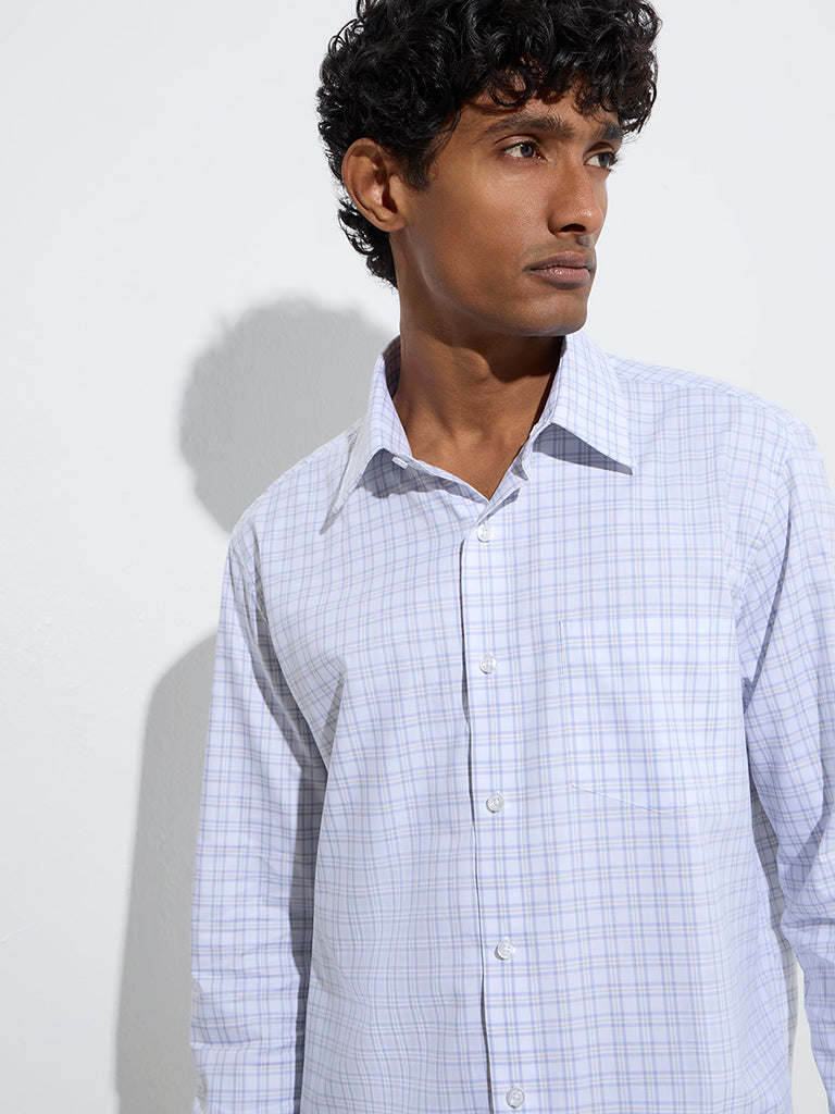 WES Formals Grey Checks Design Relaxed-Fit Cotton Shirt