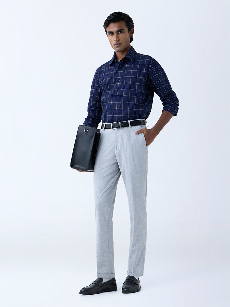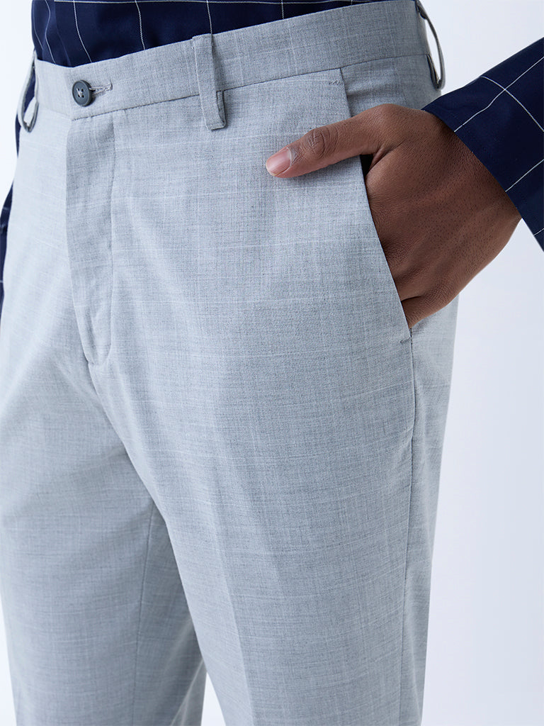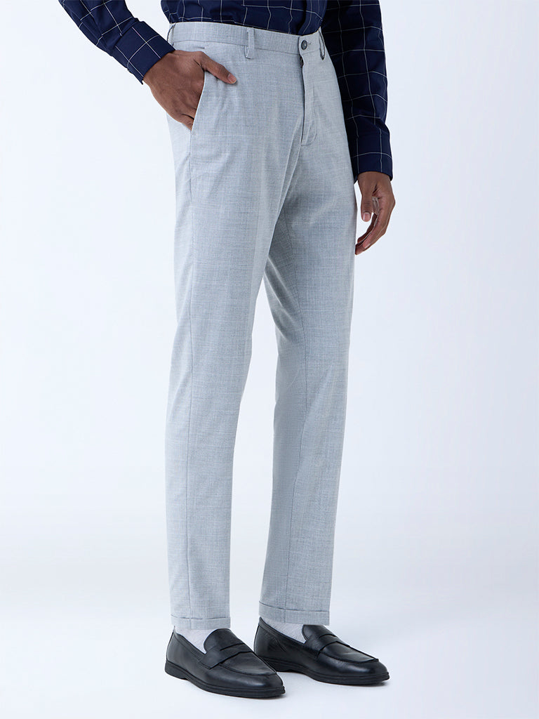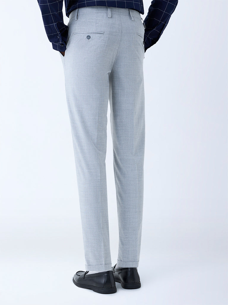 WES Formals Grey Relaxed-Fit Mid-Rise Trousers