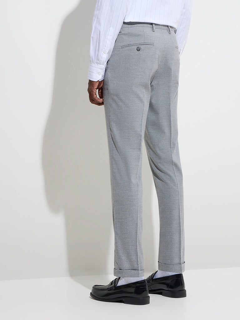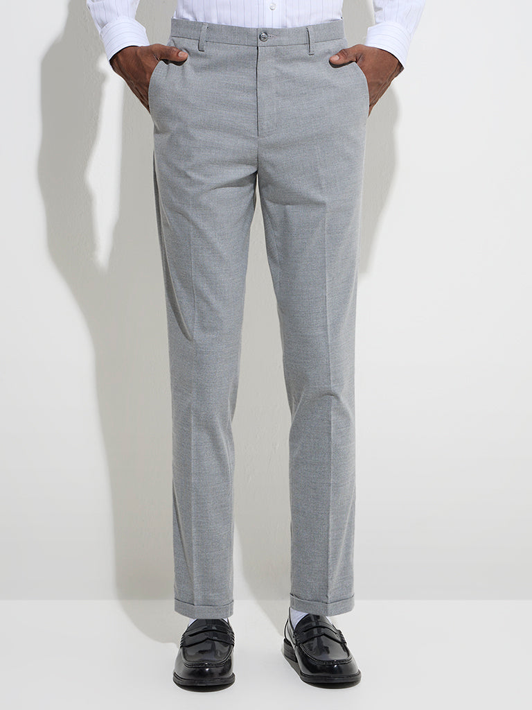 WES Formals Grey Relaxed-Fit Mid-Rise Trousers