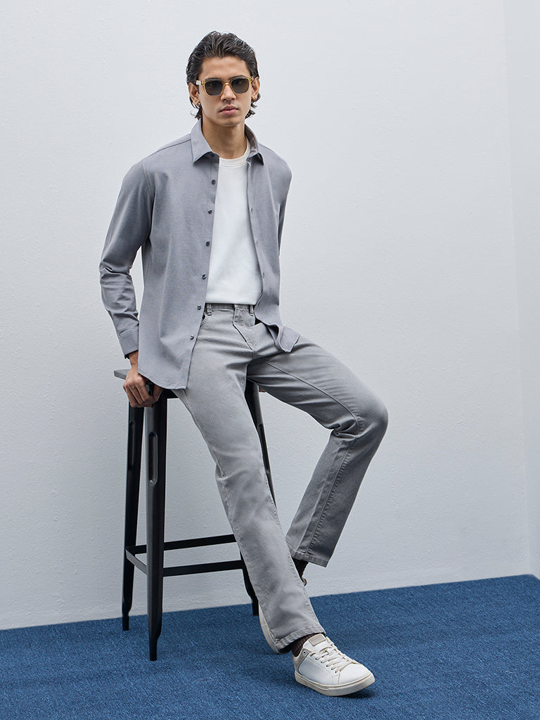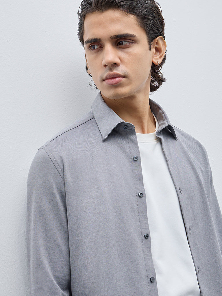 WES Formals Grey Slim-Fit Cotton-Blend Shirt