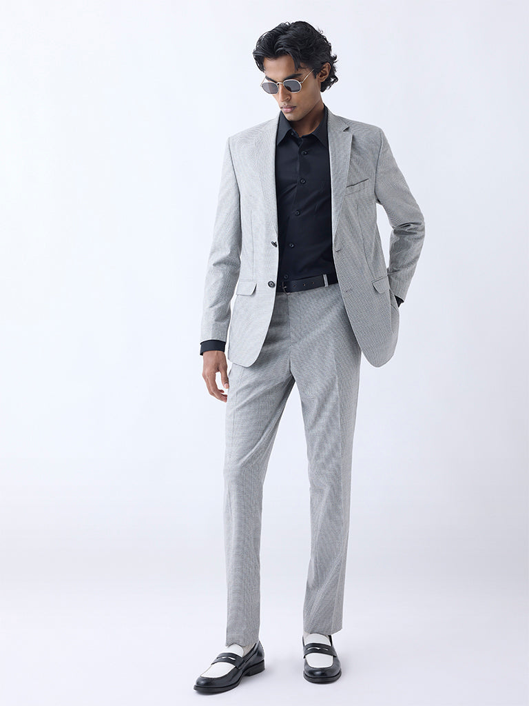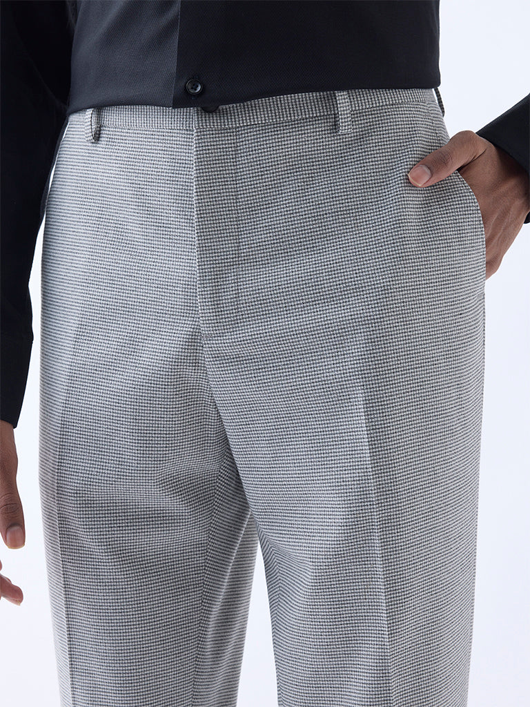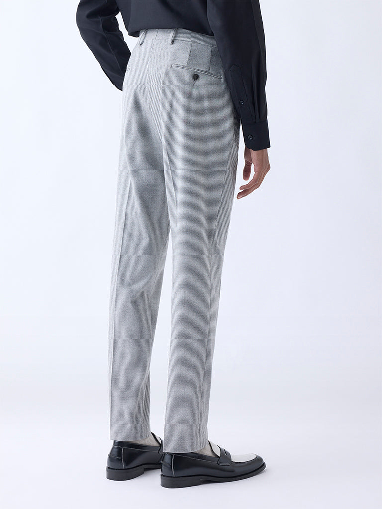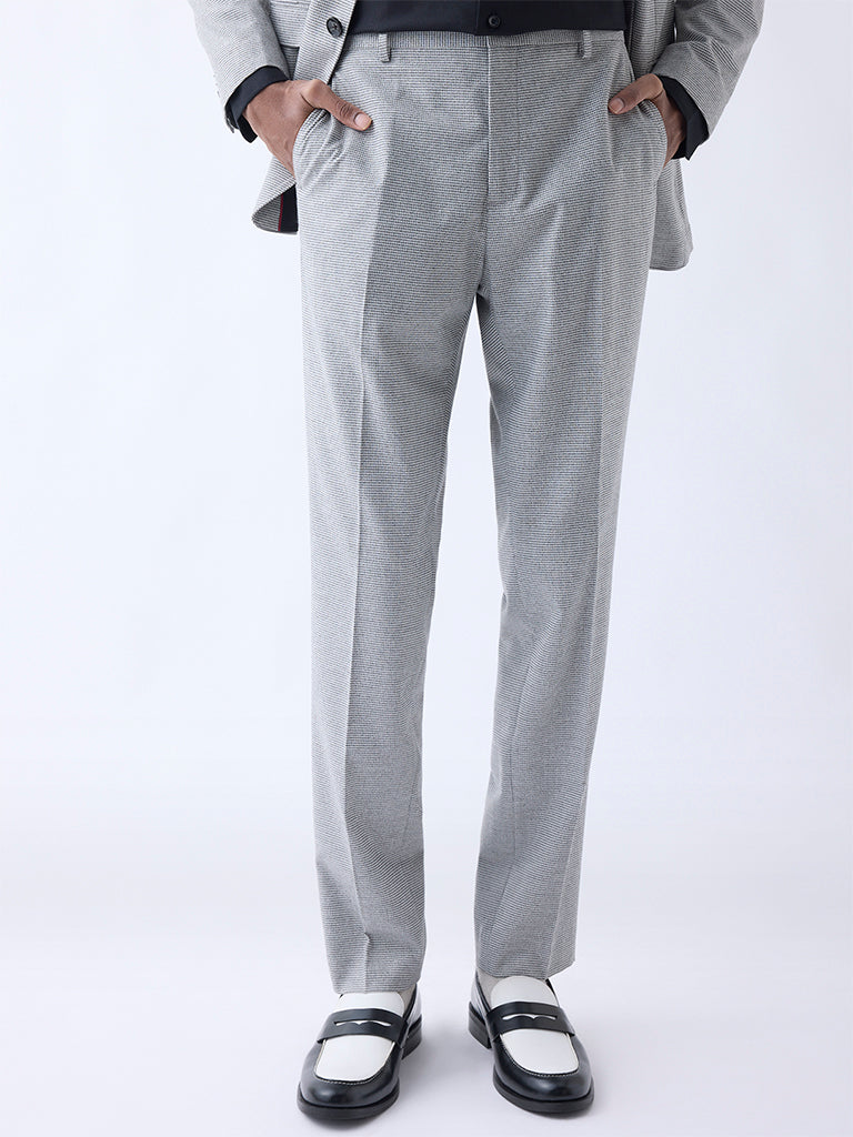 WES Formals Grey Slim-Fit Mid-Rise Trousers