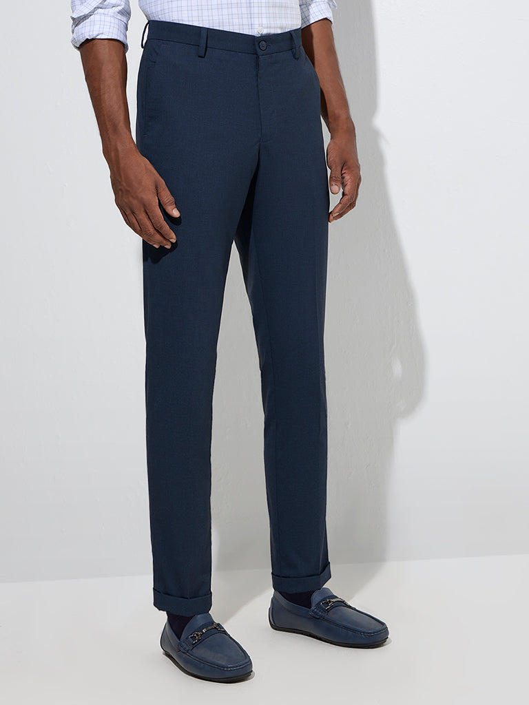 WES Formals Indigo Relaxed-Fit Mid-Rise Trousers