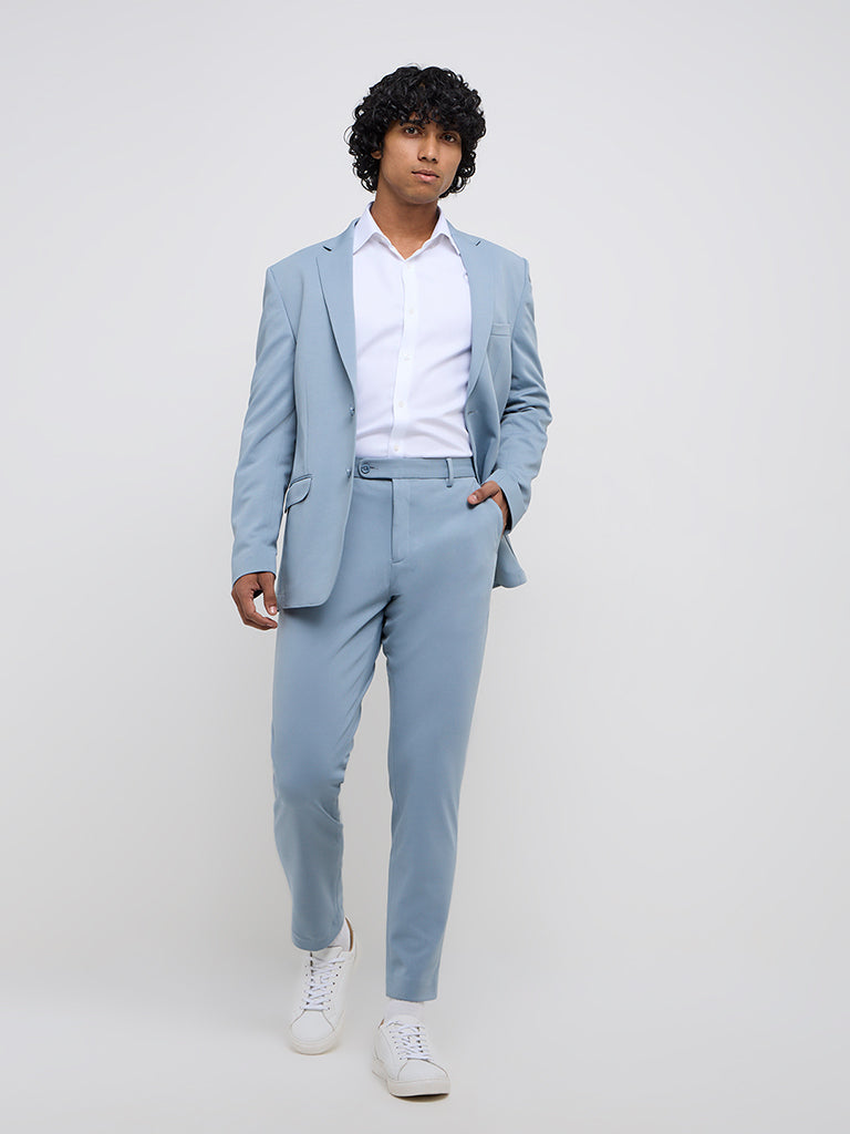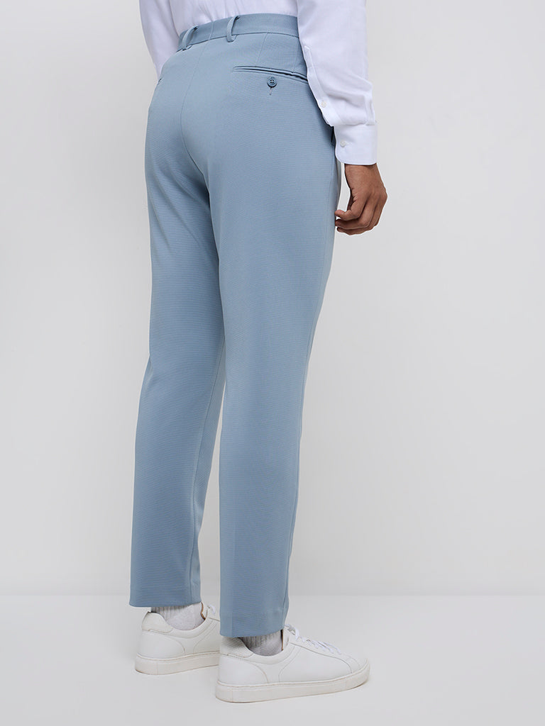 WES Formals Light Blue Slim-Tapered Mid-Rise Cotton-Blend Trousers