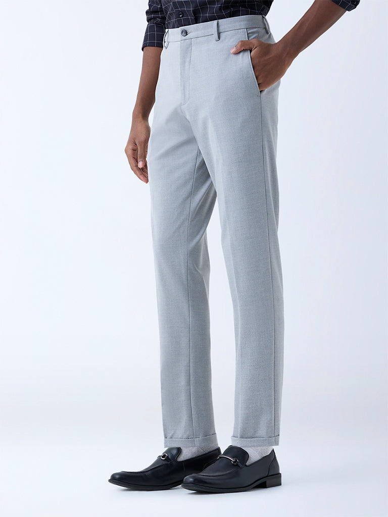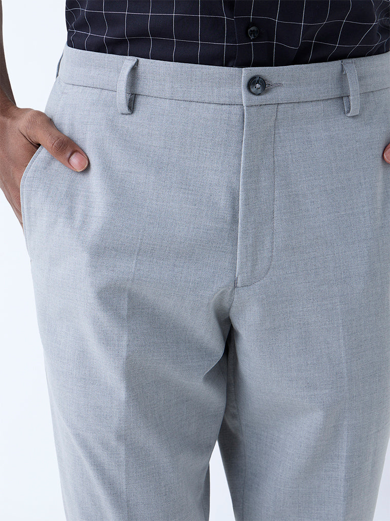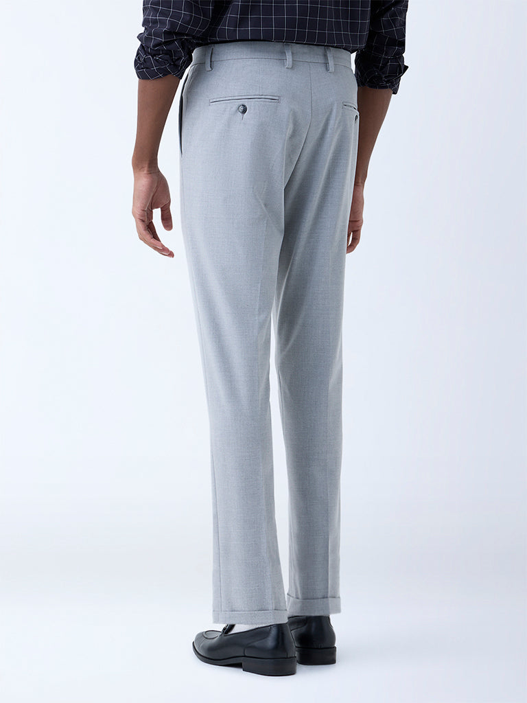 WES Formals Light Grey Solid Relaxed-Fit Mid-Rise Trousers