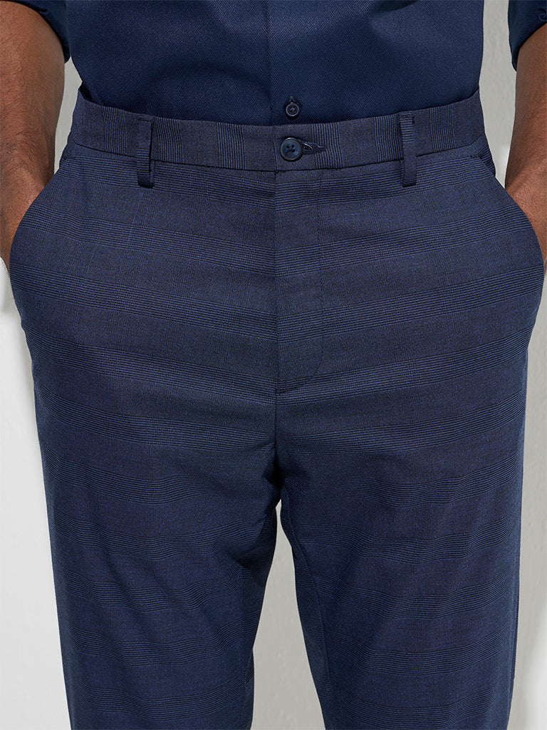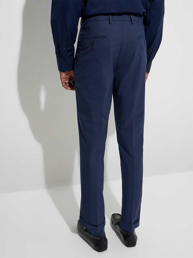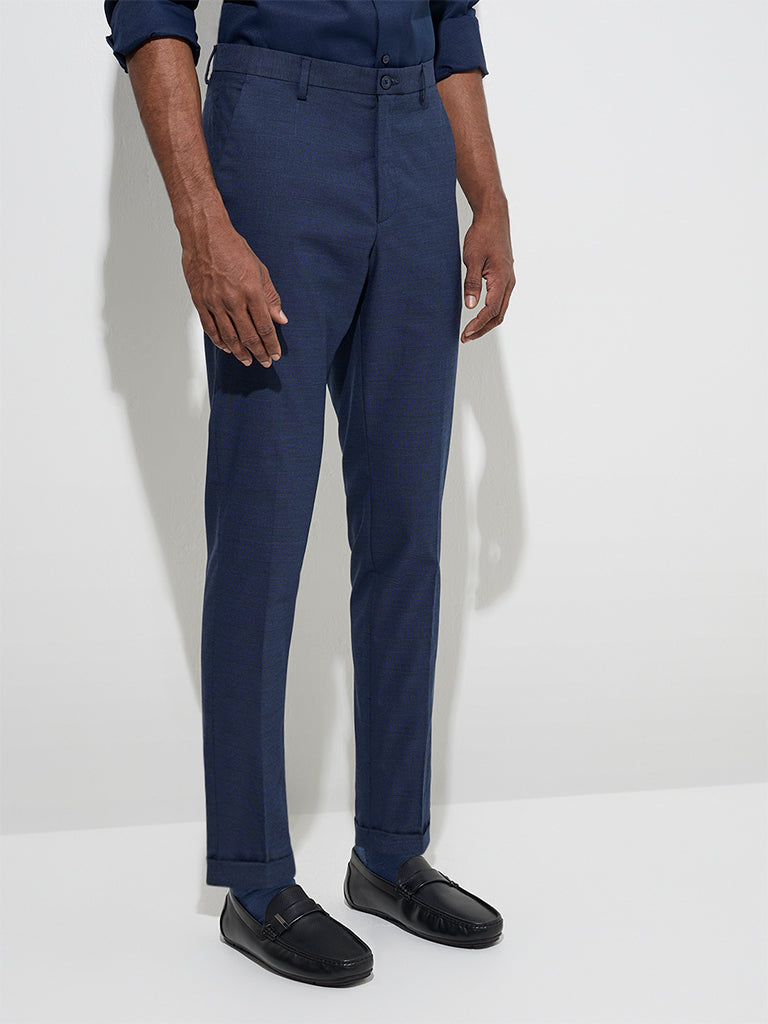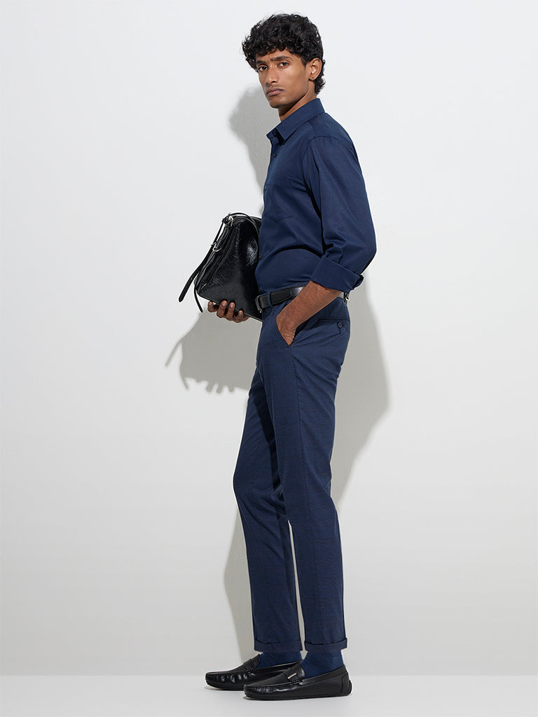 WES Formals Navy Relaxed-Fit Mid-Rise Trousers