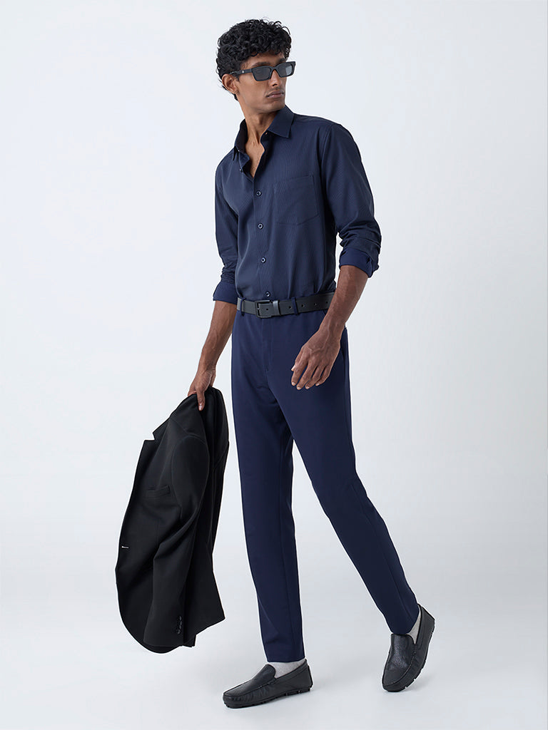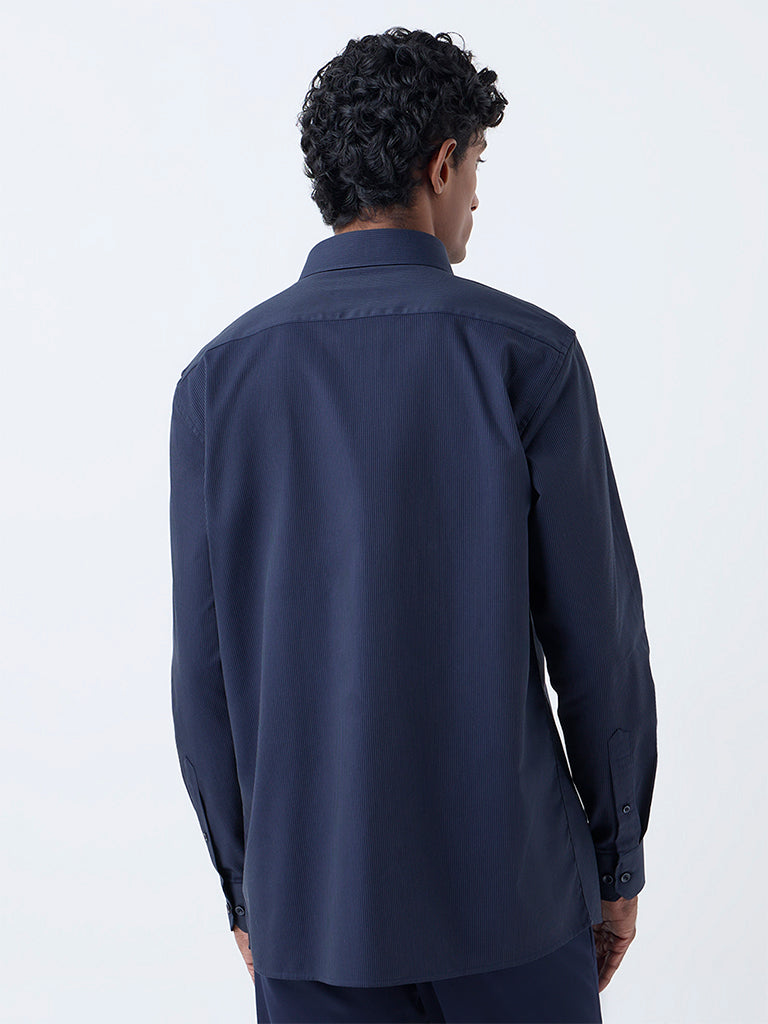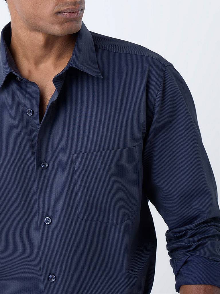 WES Formals Navy Striped Relaxed-Fit Cotton Shirt