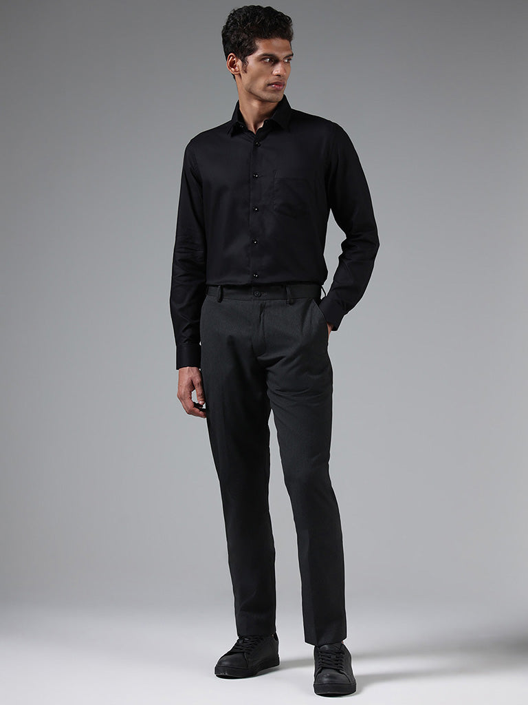 WES Formals Solid Black Cotton Relaxed-Fit Shirt