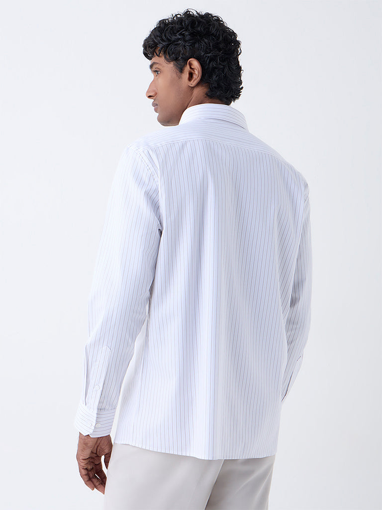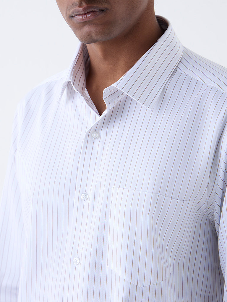 WES Formals Taupe Striped Slim Fit Cotton Shirt