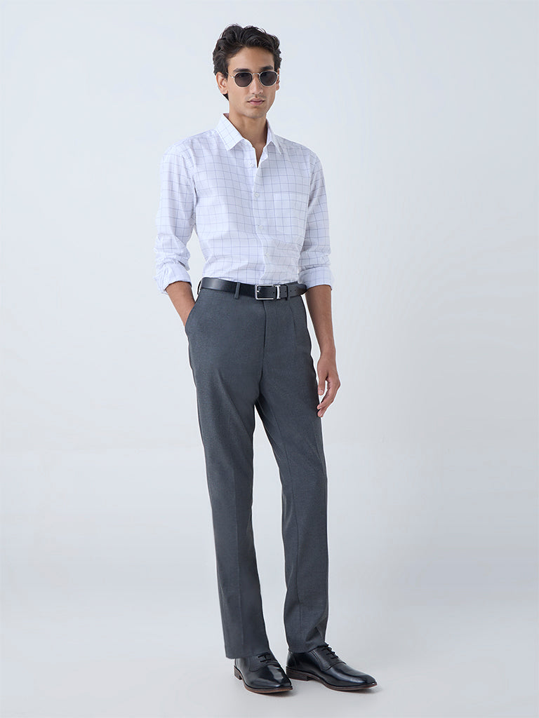 Defined with checkered patterns for a classic edge. this white shirt from WES Formals features a pure-cotton composition for elevated comfort. Tailored in a relaxed silhouette. it carries a smart collar. full sleeves. a button placket. and a chest pocket—balancing timeless style with everyday ease.