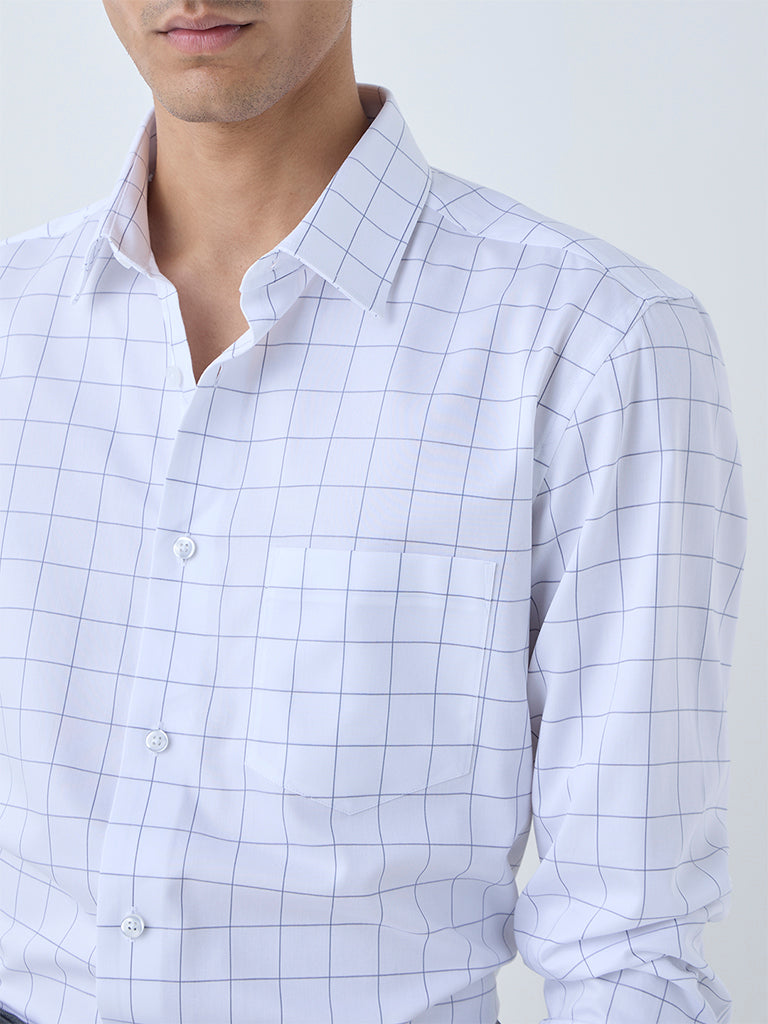 WES Formals White Checkered Relaxed-Fit Cotton Shirt