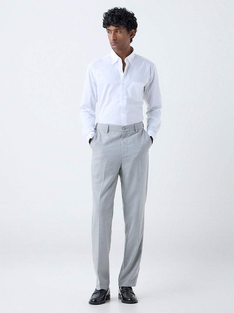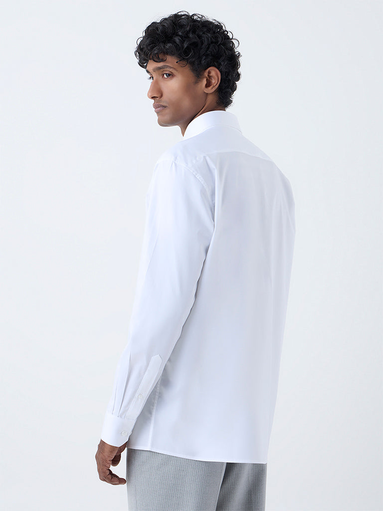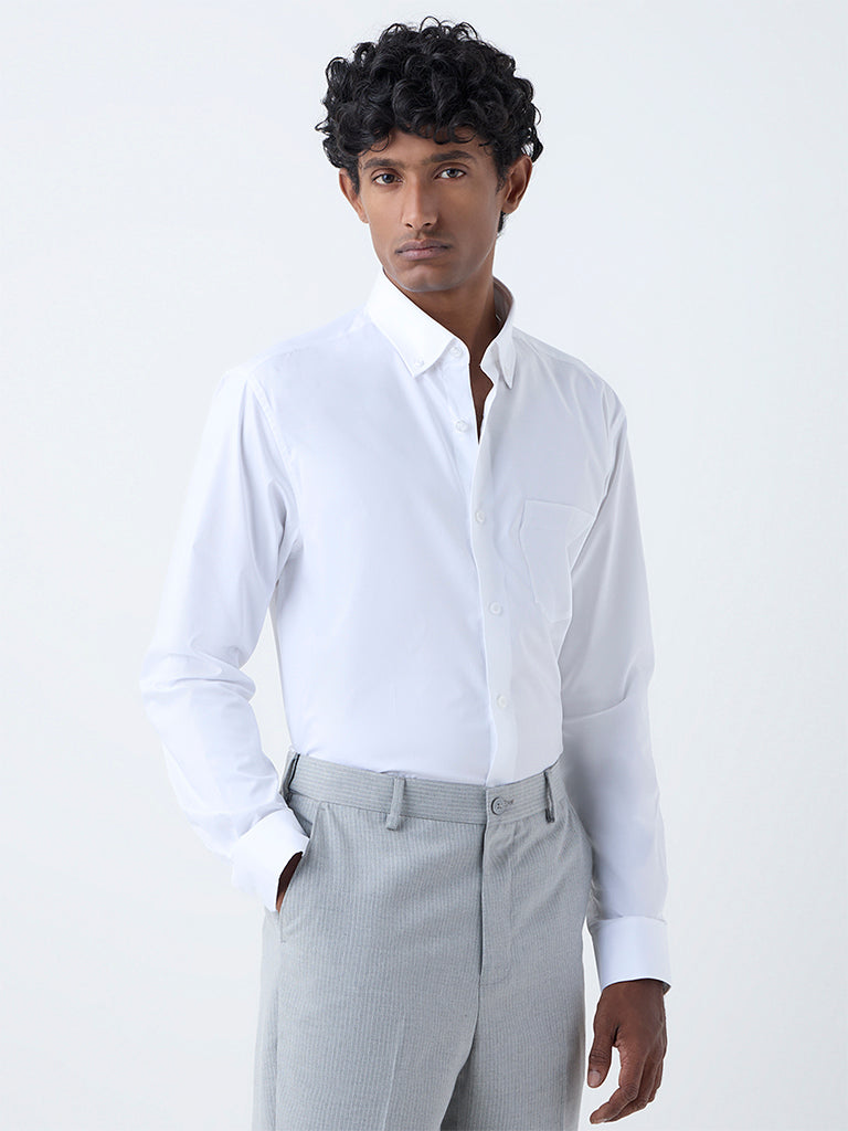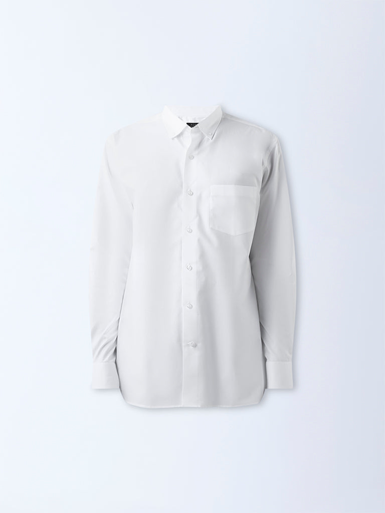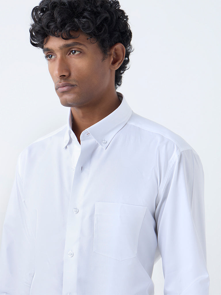 Add a crisp touch to your workwear rotation with this white shirt from WES Formals. Featuring a button-down collar. full sleeves and a front patch pocket. it offers a neatly structured silhouette. Carved in a relaxed-fit. it’s spun from a pure cotton fabric for lasting comfort. A sharp essential that brings effortless refinement to your workwear wardrobe.