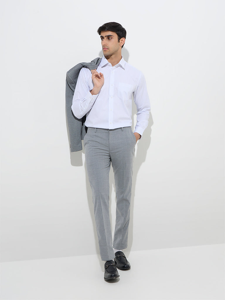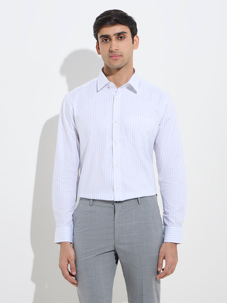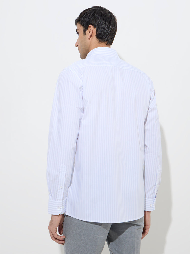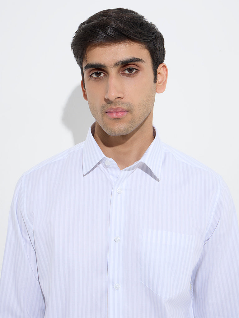 WES Formals White Striped Relaxed-Fit Cotton Shirt
