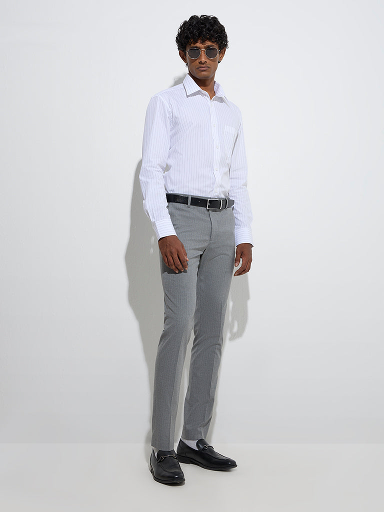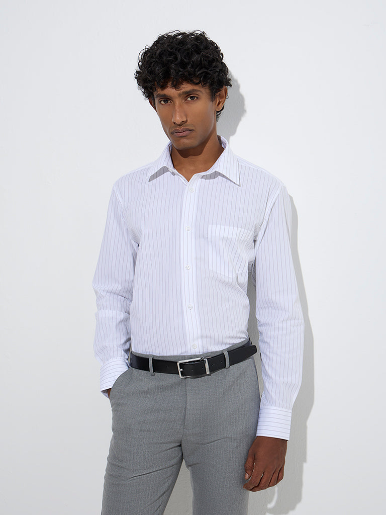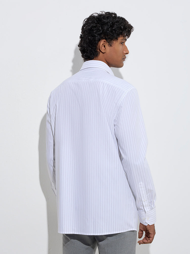 WES Formals White Striped Relaxed-Fit Cotton Shirt
