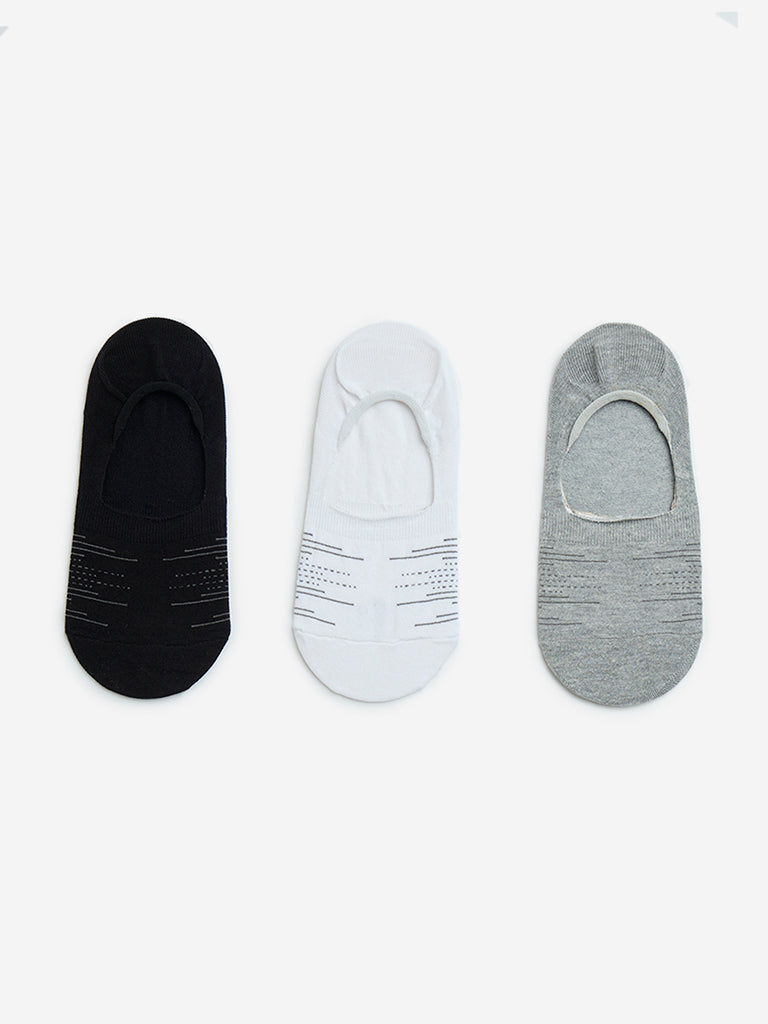 Walk in absolute comfort with this pack of three invisible socks from WES Lounge. In classic shades of black. white. and grey melange. these no-show socks feature print patterns for added style. They provide all-day comfort and a secure fit. perfect for your minimalist style.