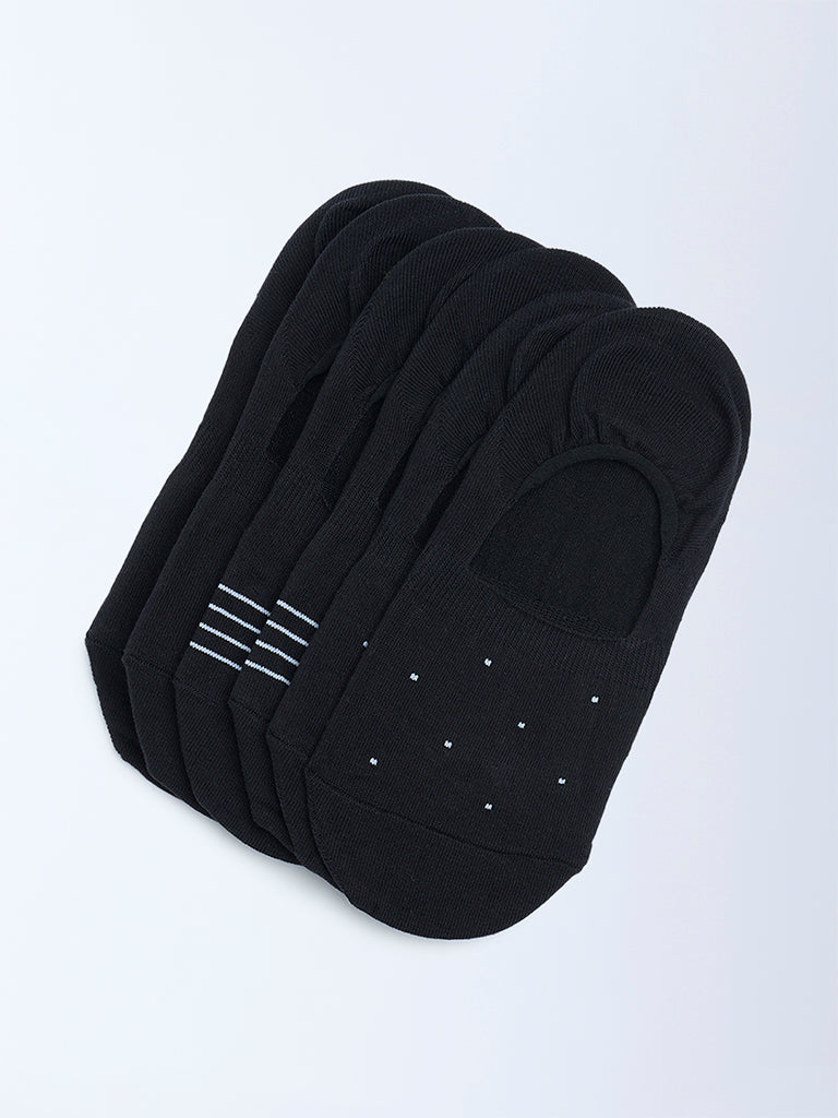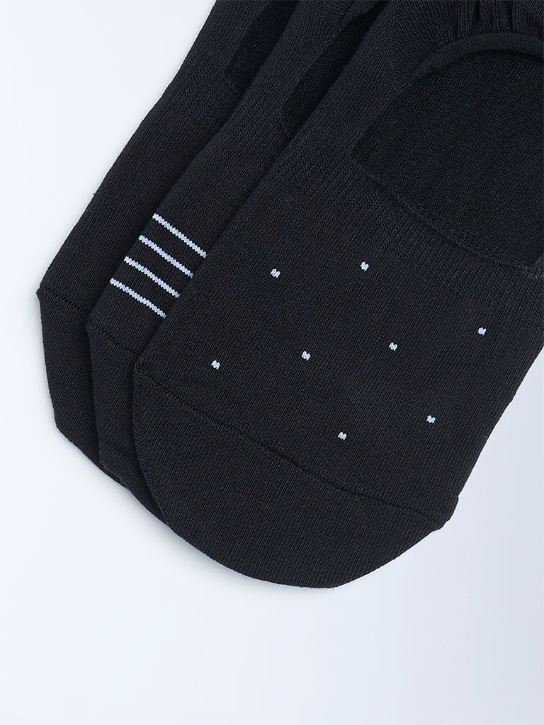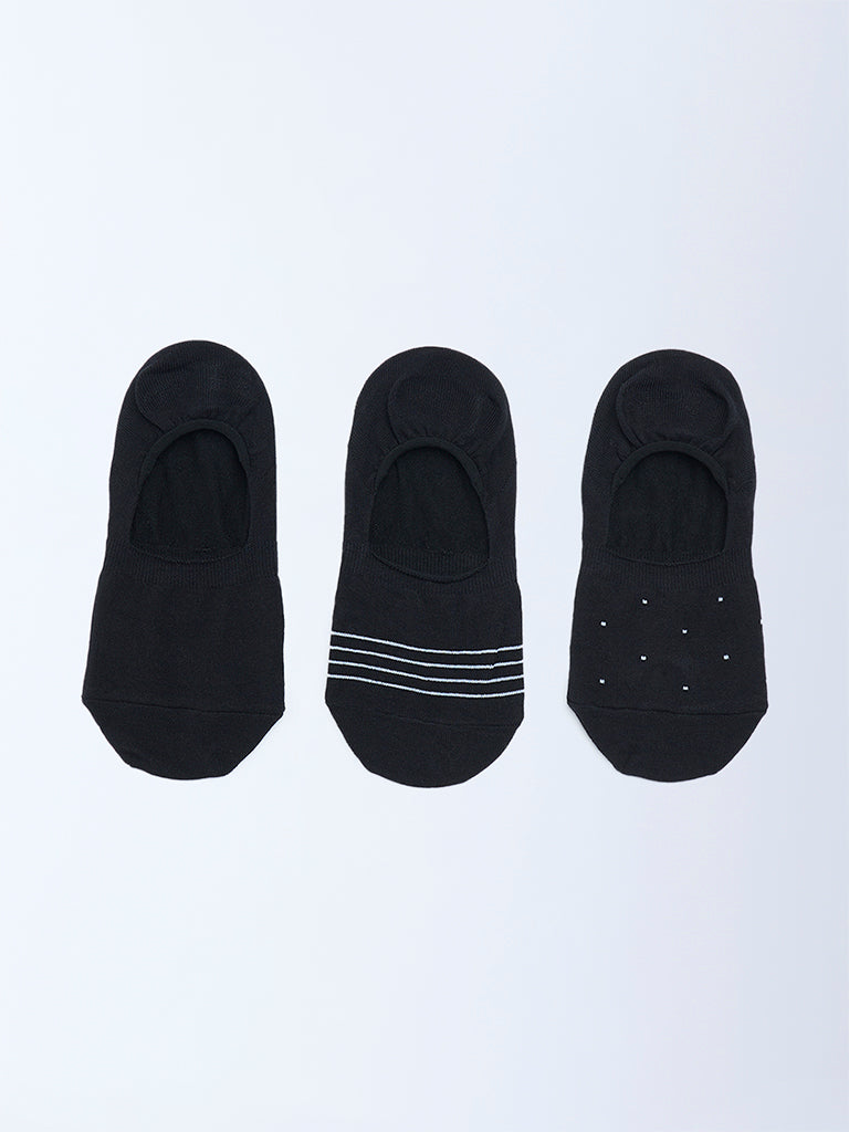 WES Lounge Black Printed Invisible Cotton-Blend Socks – Pack of 3