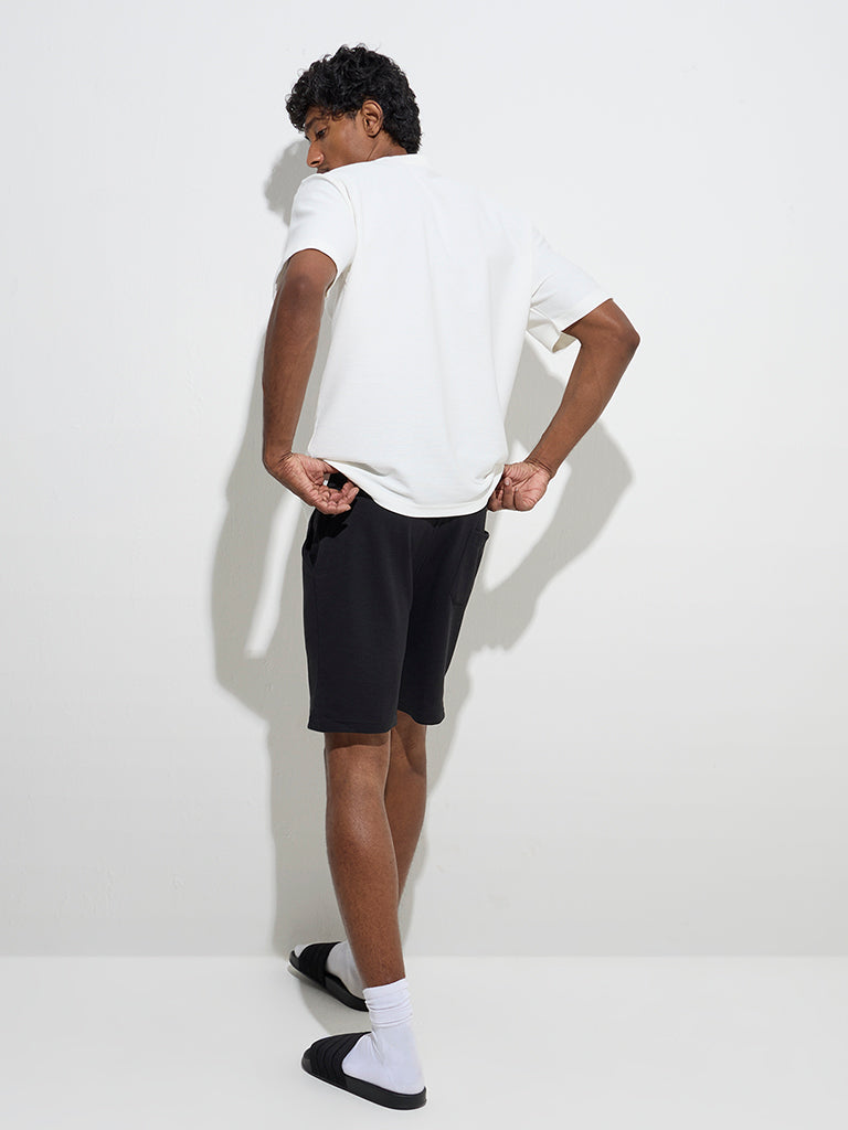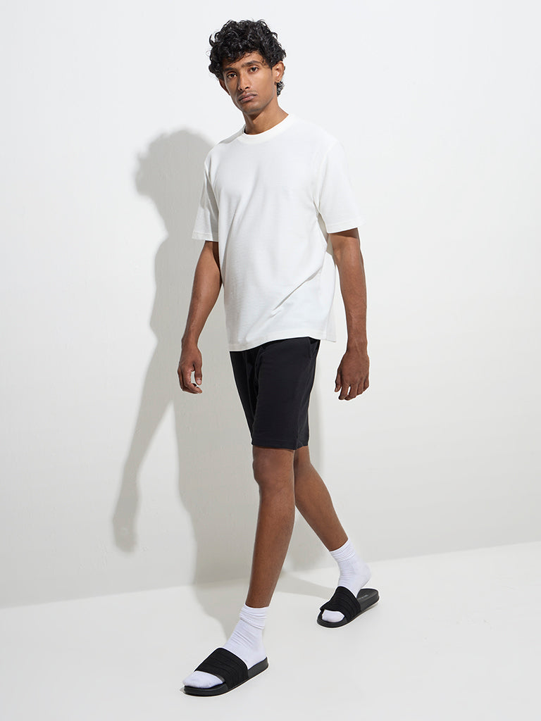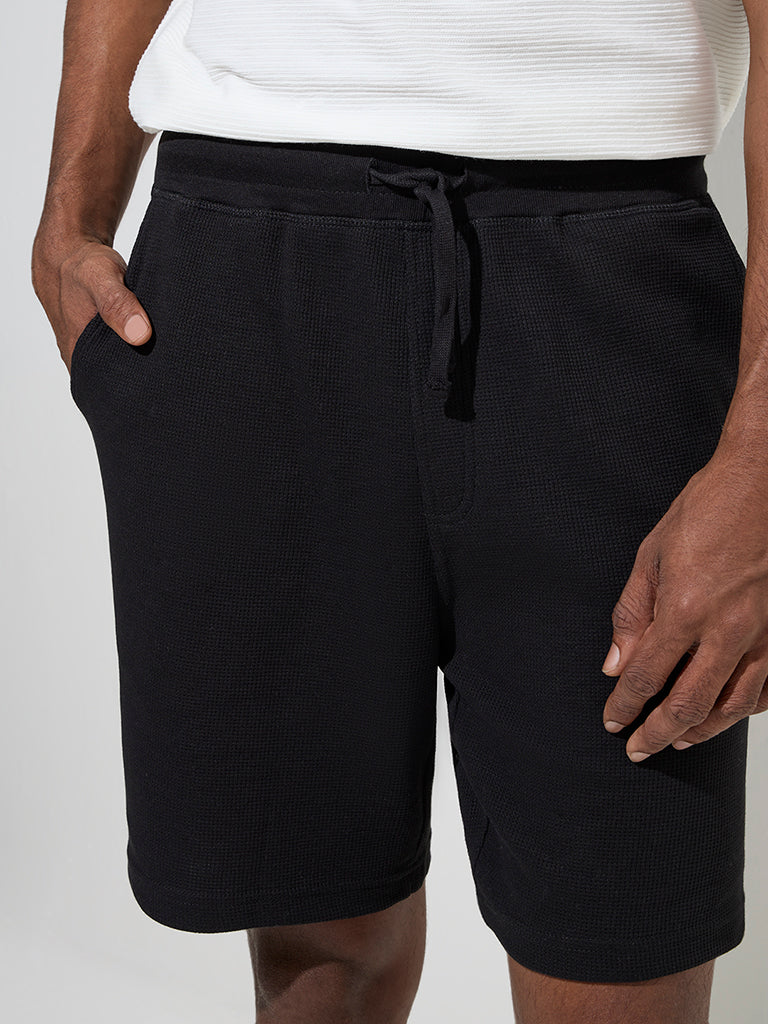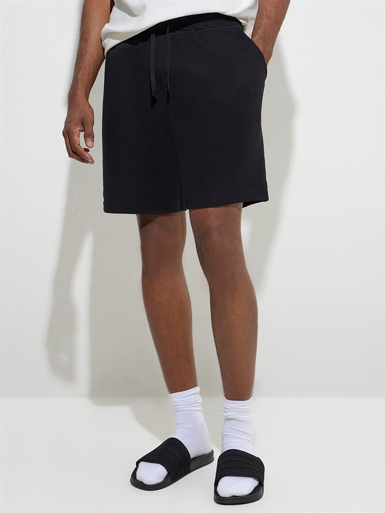 WES Lounge Black Relaxed-Fit Mid-Rise Cotton-Blend Shorts