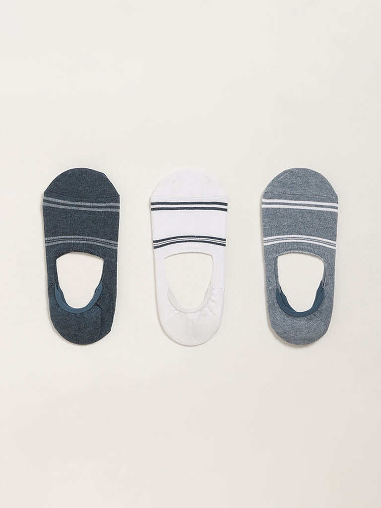 WES Lounge invisible socks. dark blue. light grey. white hue. striped printed in pack of 3.