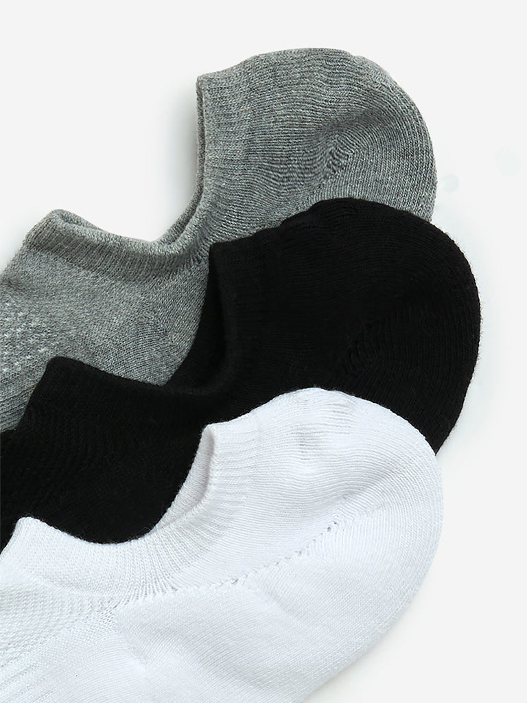 WES Lounge Grey Cotton-Blend No-Show Socks- Pack of 3