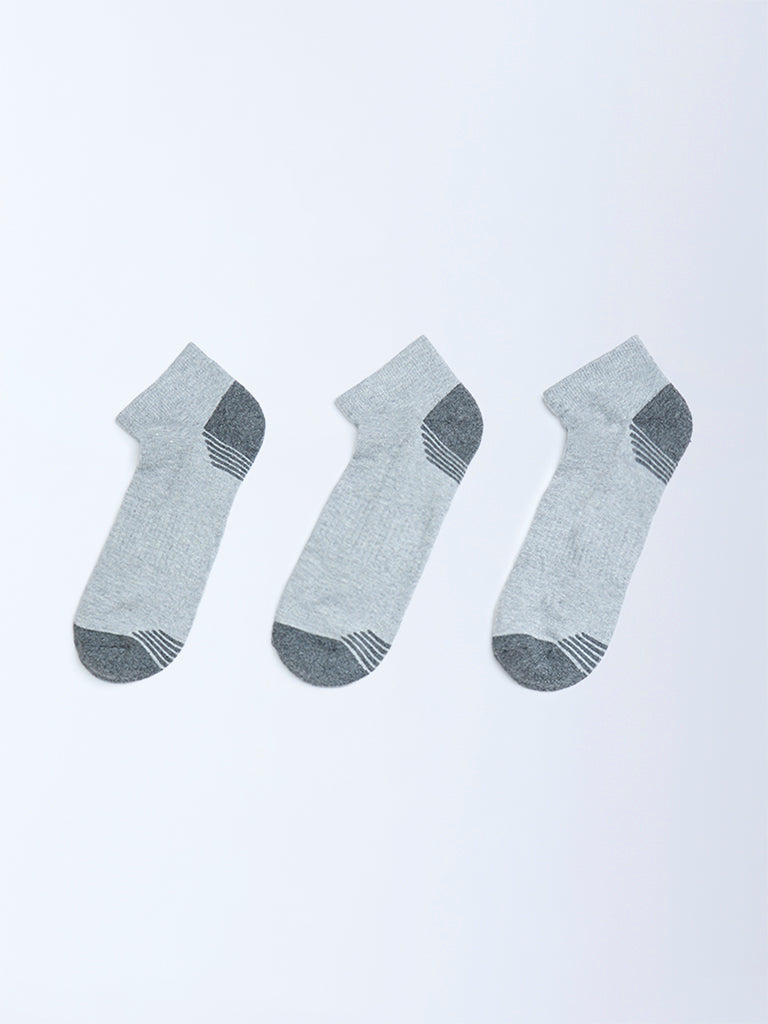 WES Lounge Grey Cotton-Blend Trainer Socks – Pack of 3
