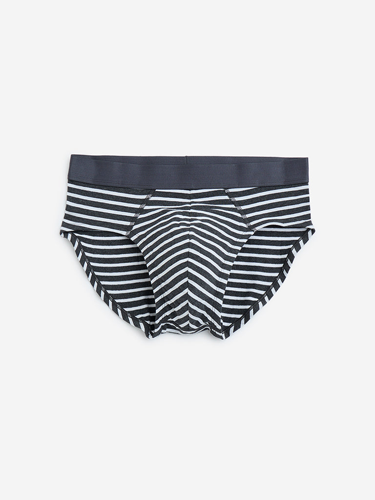 WES Lounge Grey Striped Cotton Briefs – Pack of 3