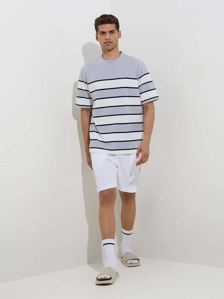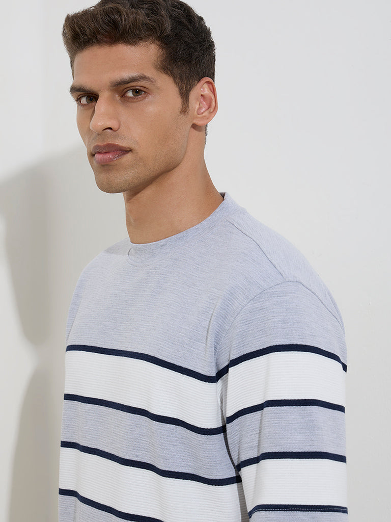 WES Lounge Grey Striped Relaxed-Fit Cotton-Blend T-Shirt