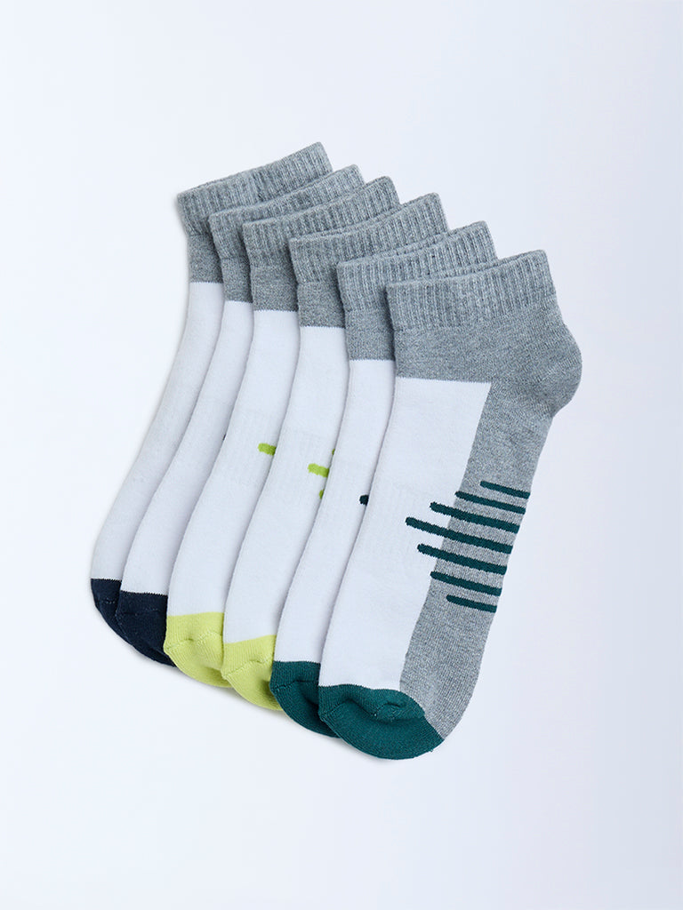 Keep every stride supported with this pack of three striped cotton-blend trainer socks from WES Lounge. Available in emerald green. lime. and navy variants. these sports socks feature cushioned toes and reinforced heels for lasting comfort. making them perfect for workouts. weekend adventures. or all-day wear.