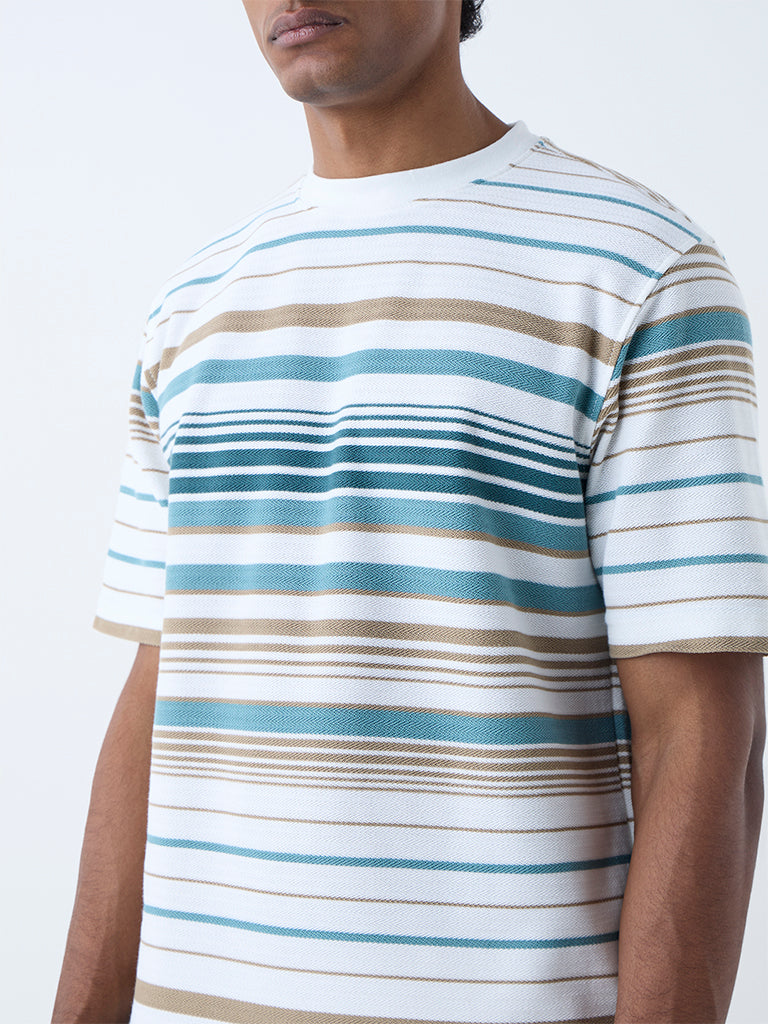 WES Lounge Multicolour Striped Relaxed-Fit T-Shirt