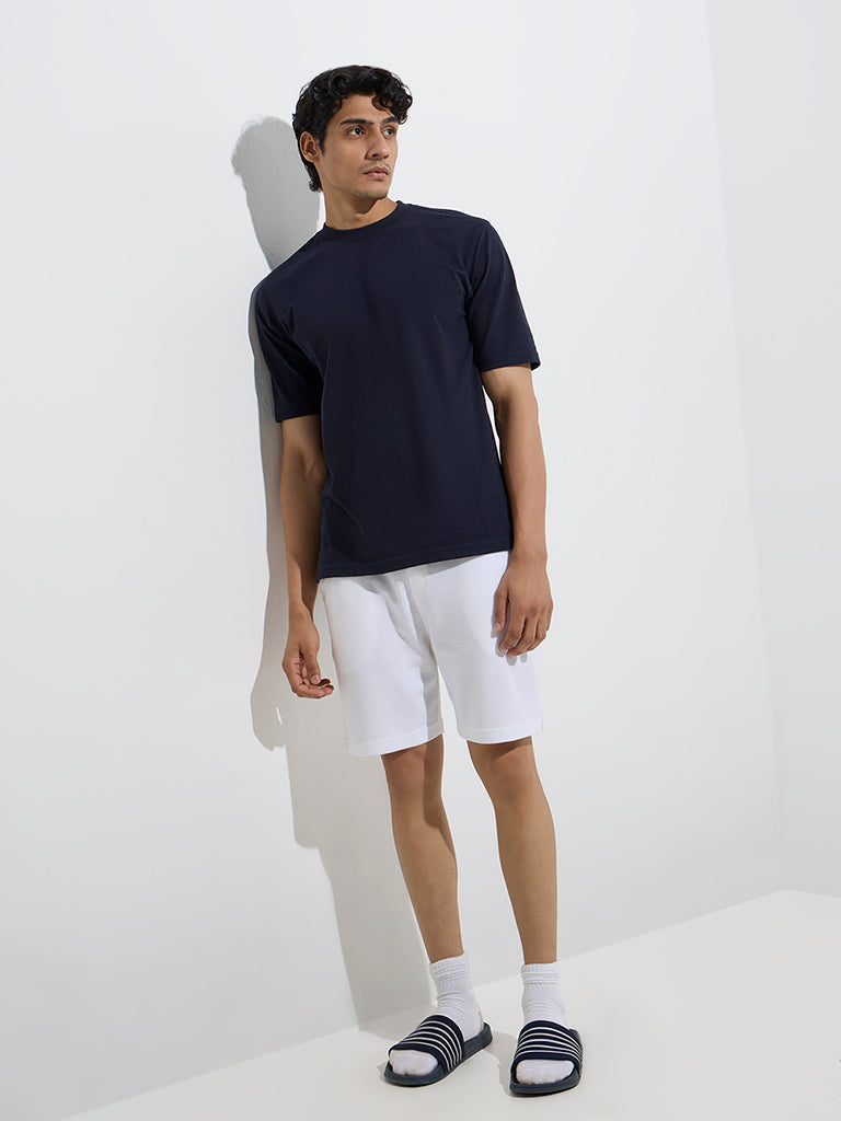 WES Lounge Navy Solid Relaxed-Fit Cotton-Blend T-Shirt