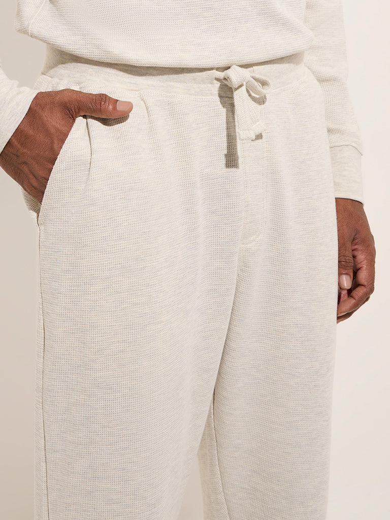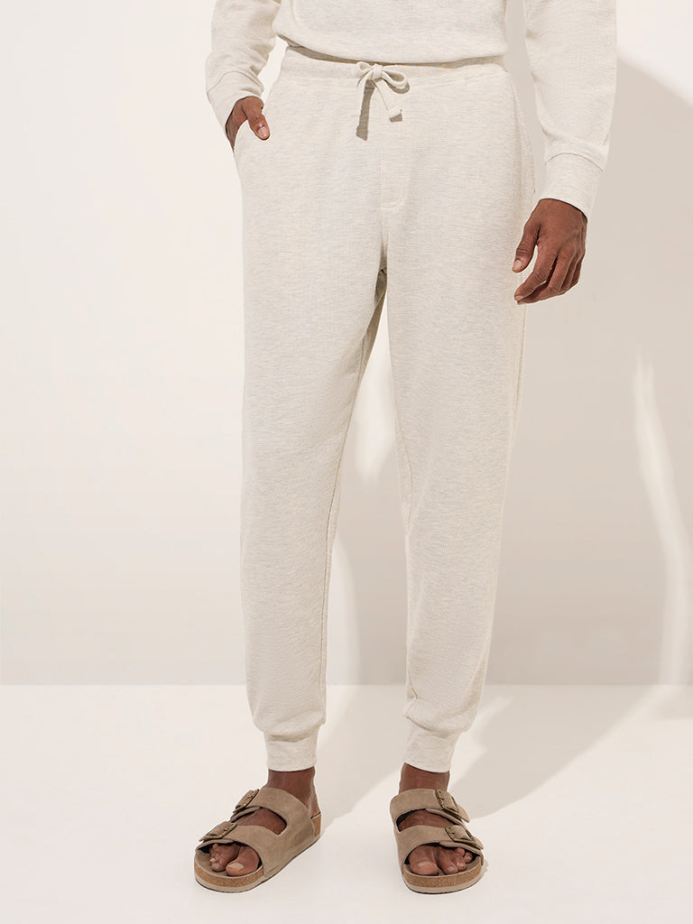 These off-white track pants from WES Lounge are crafted from a waffle-textured fabric. Showcasing a relaxed silhouette. the mid-rise pair is fitted with an elasticated drawstring waistband and side pockets.