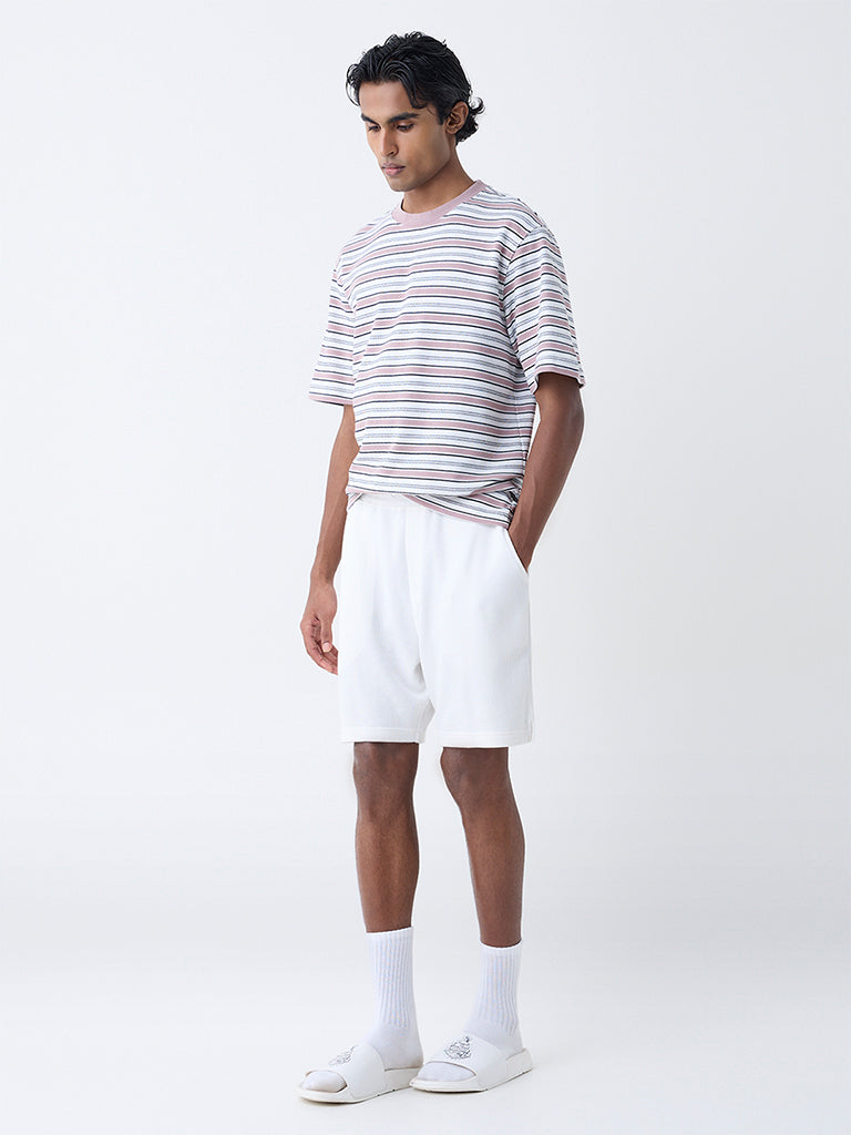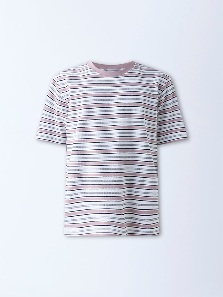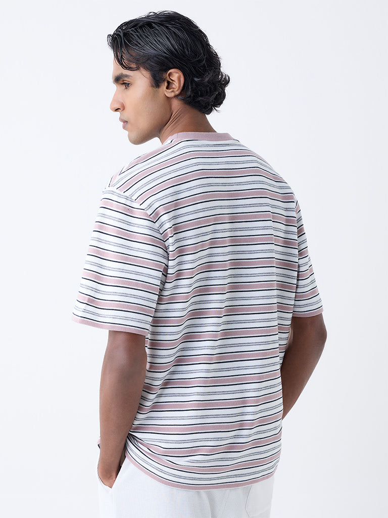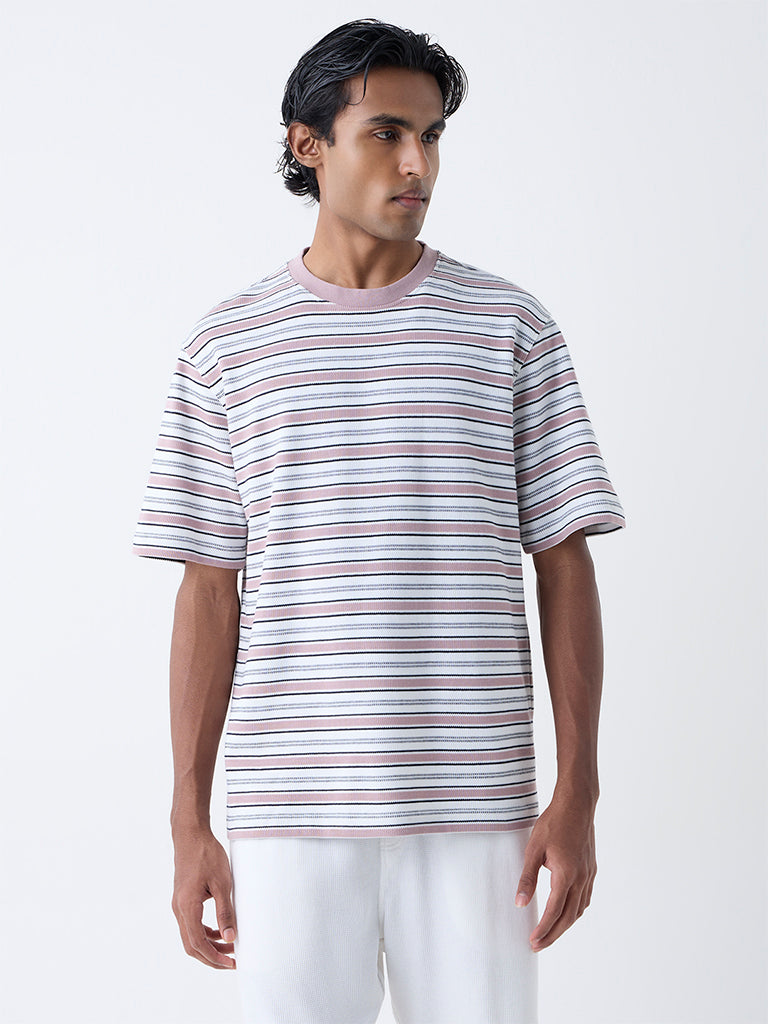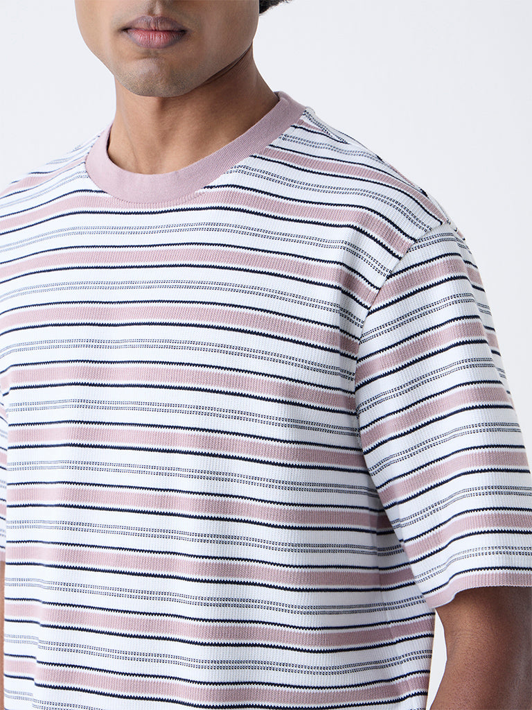 WES Lounge Pink Striped Relaxed-Fit Cotton-Blend T-Shirt