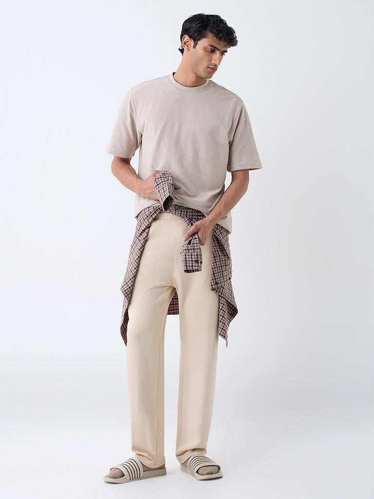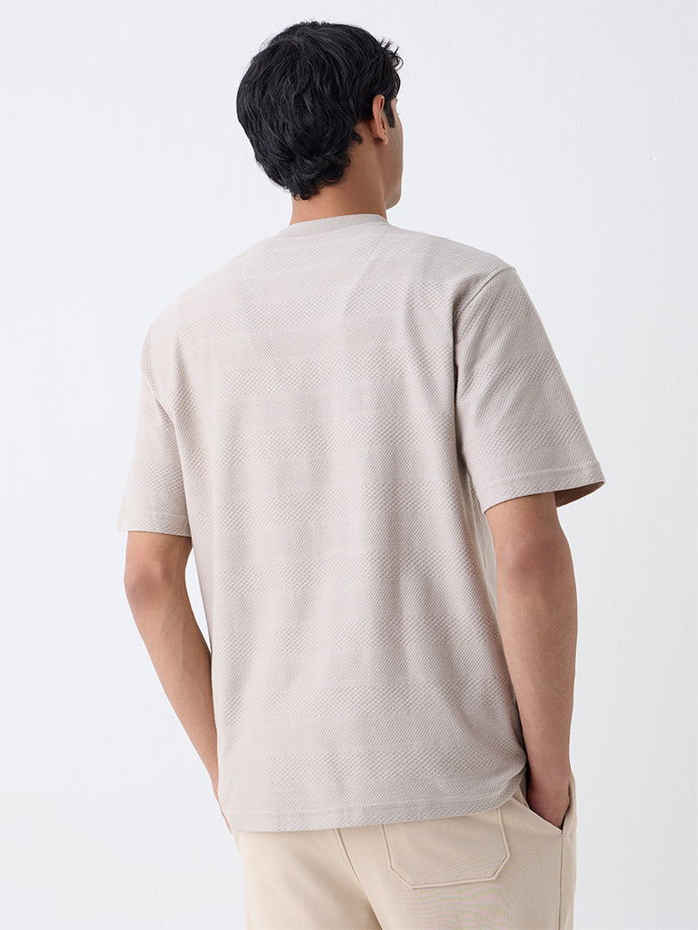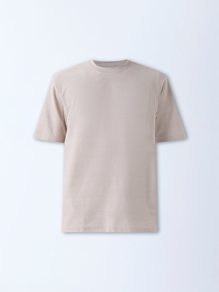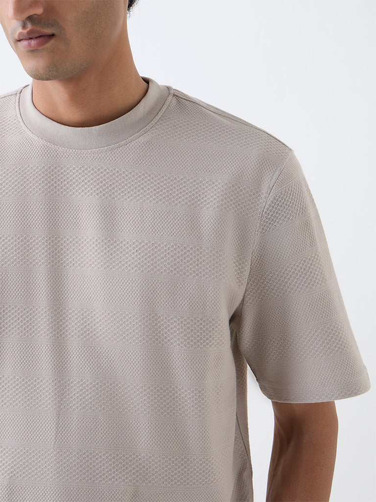 WES Lounge Taupe Self-Textured Relaxed-Fit T-Shirt
