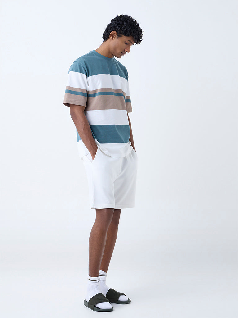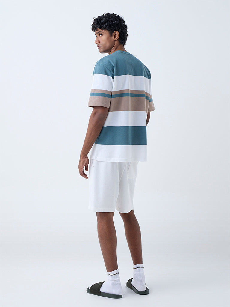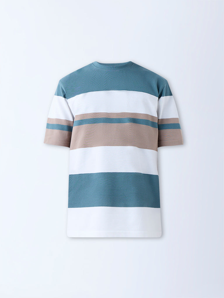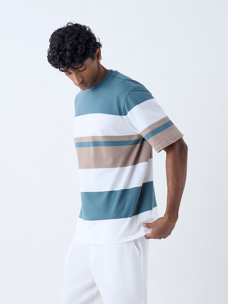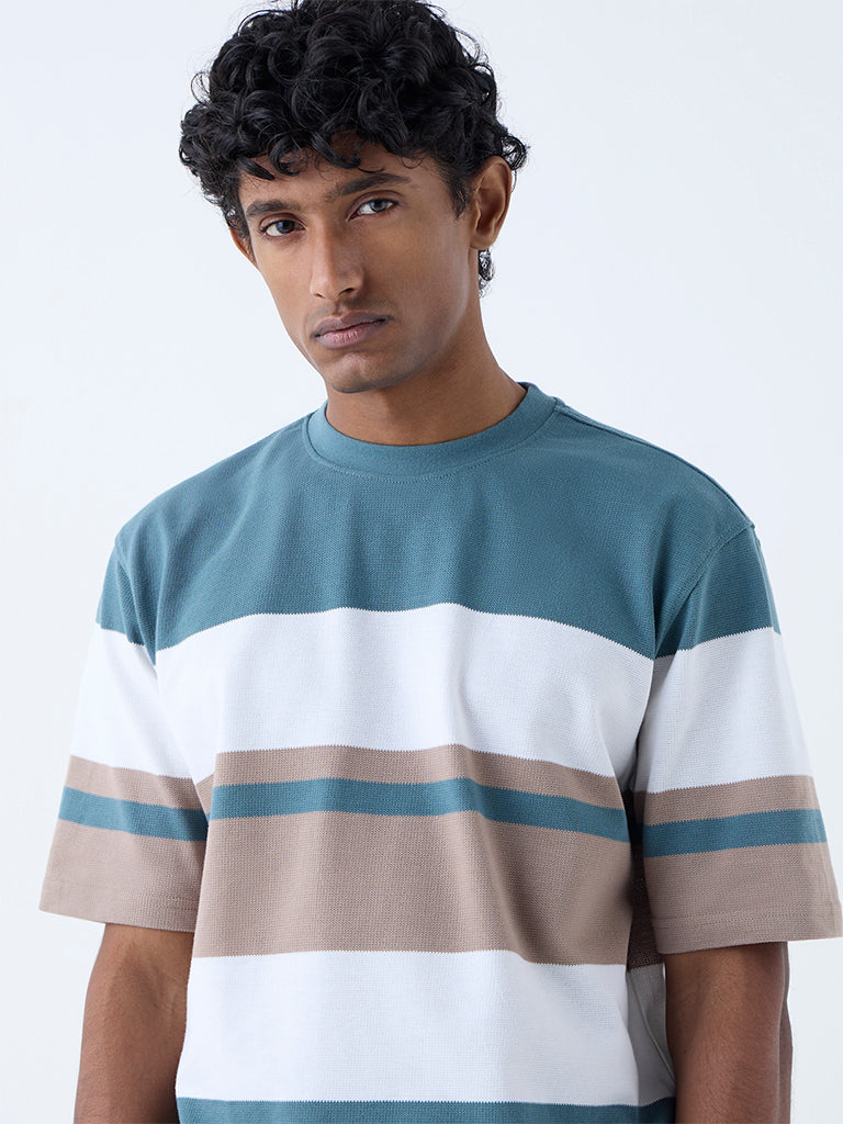 WES Lounge Teal Colour-Blocked Relaxed-Fit T-Shirt