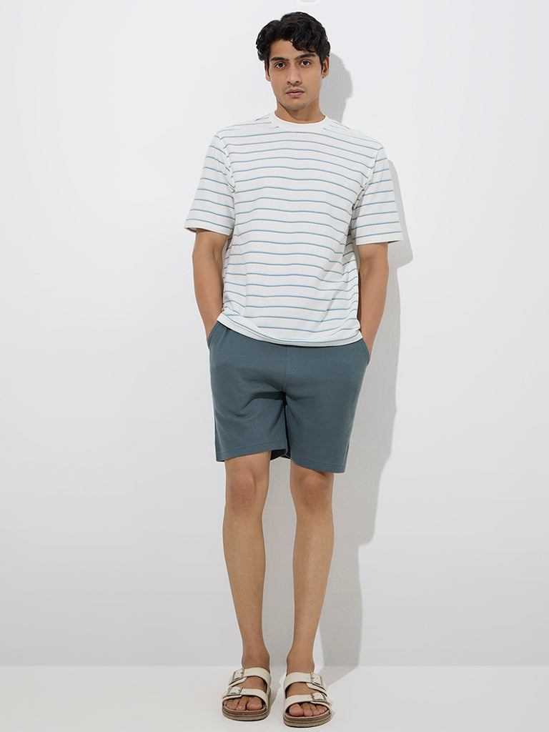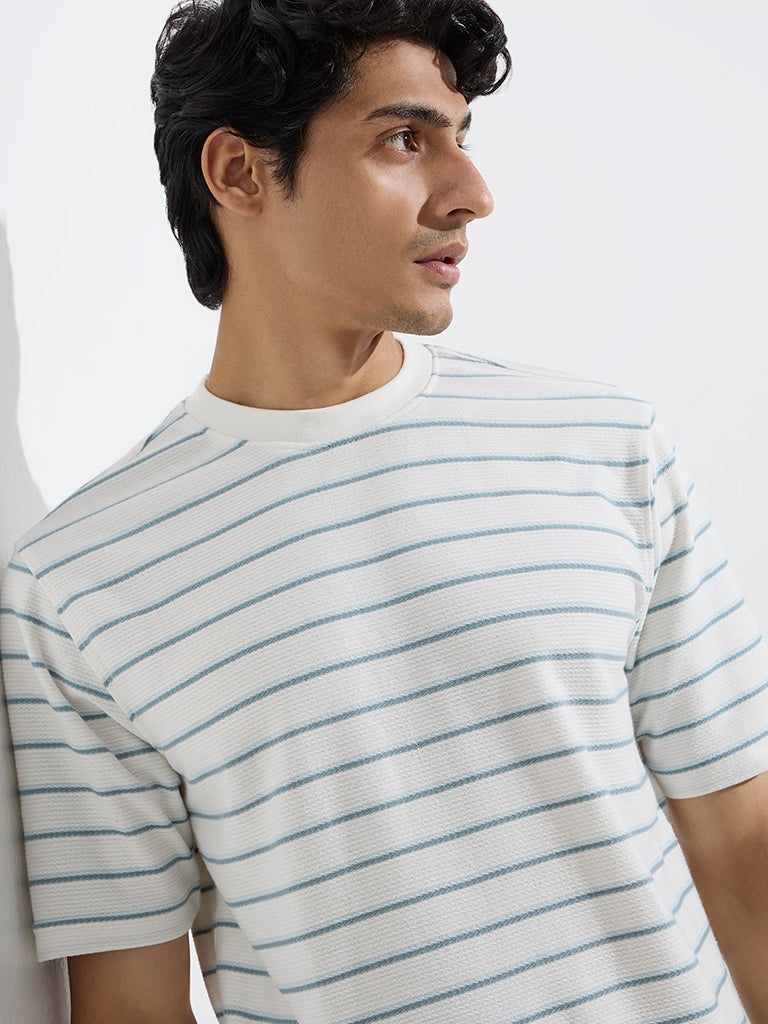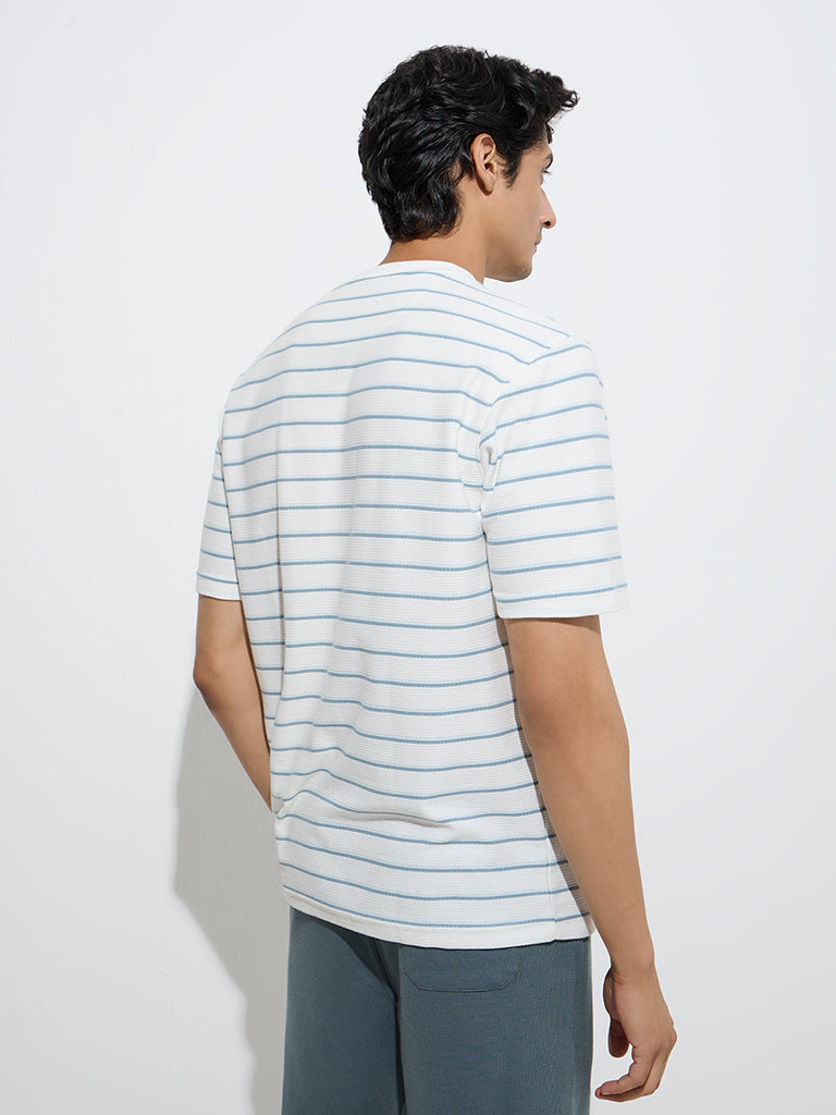 WES Lounge White Stripe Relaxed-Fit Cotton-Blend T-Shirt