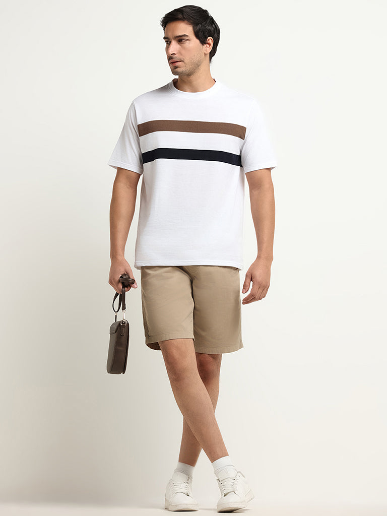 WES Lounge White Striped Cotton-Blend Relaxed Fit T-Shirt