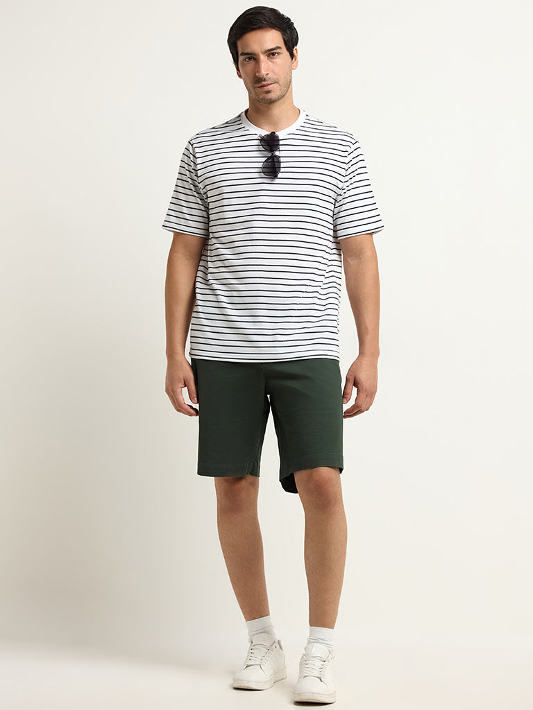 WES Lounge White Striped Cotton-Blend Relaxed Fit T-Shirt