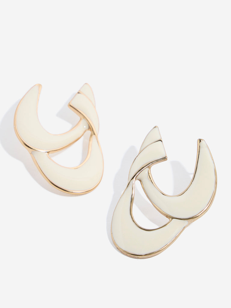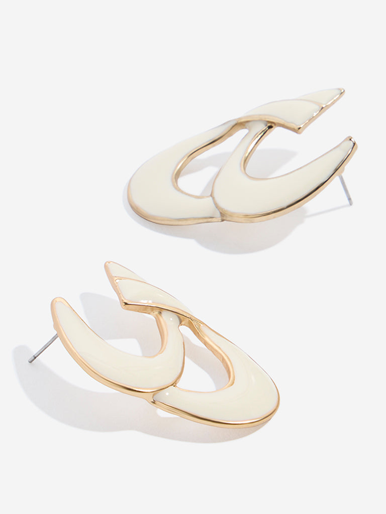 These beige statement earrings from Westside Accessories showcase a sculptural silhouette that blends modern style with refined elegance. Framed in lustrous gold-tone trim. the high-gloss enamel finish adds a sleek. contemporary edge. Perfect for dressing up casual outfits or adding a bold accent to evening looks.