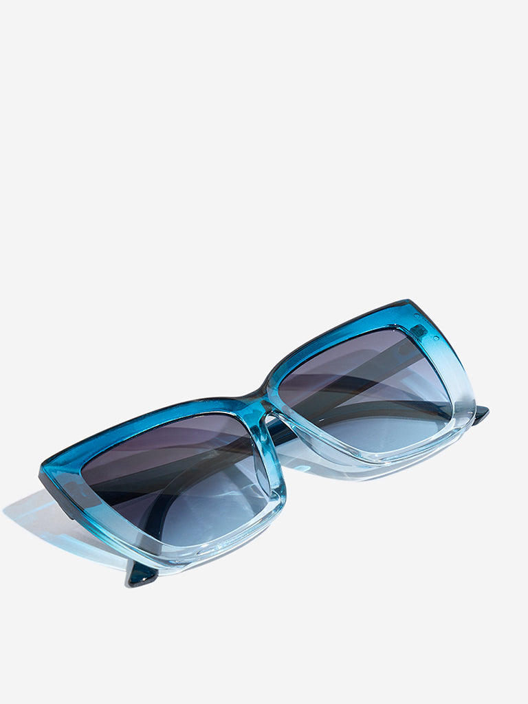 These blue wayfarer sunglasses from Westside Accessories feature a stylish gradient effect on the lenses. Designed for both fashion and function. they offer essential eye protection and come with a protective pouch for easy storage.