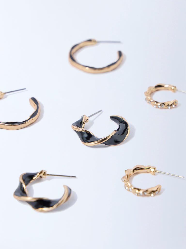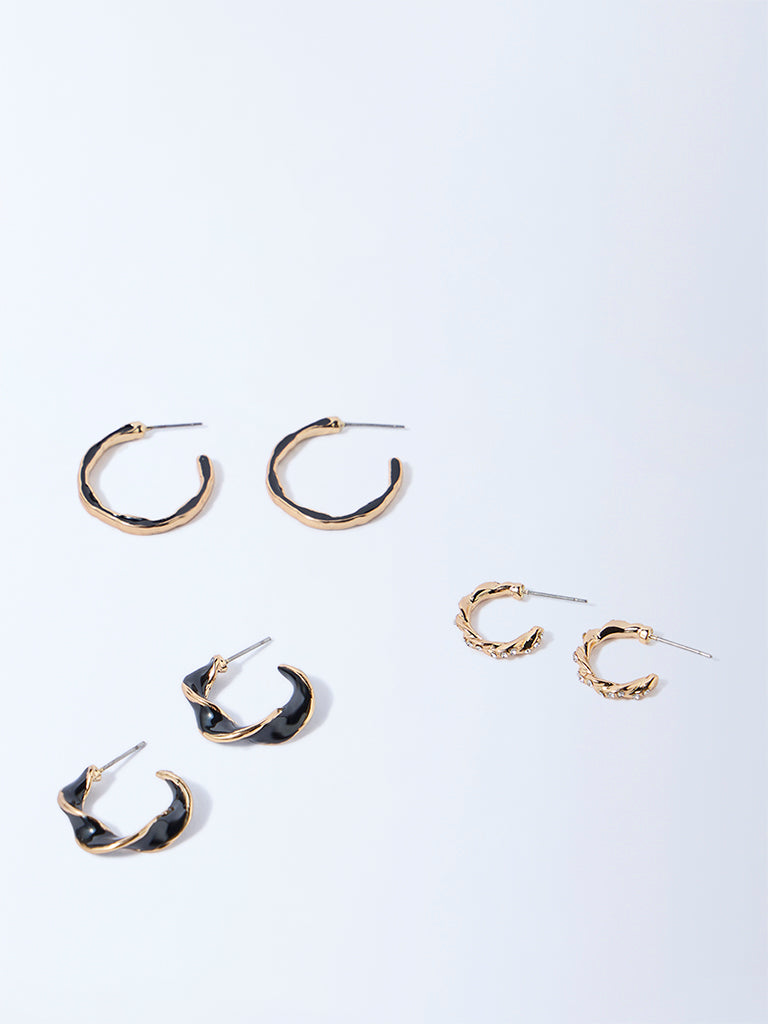Westside Accessories Gold and Black Enamel Hoop Earrings Set – Pack of 3