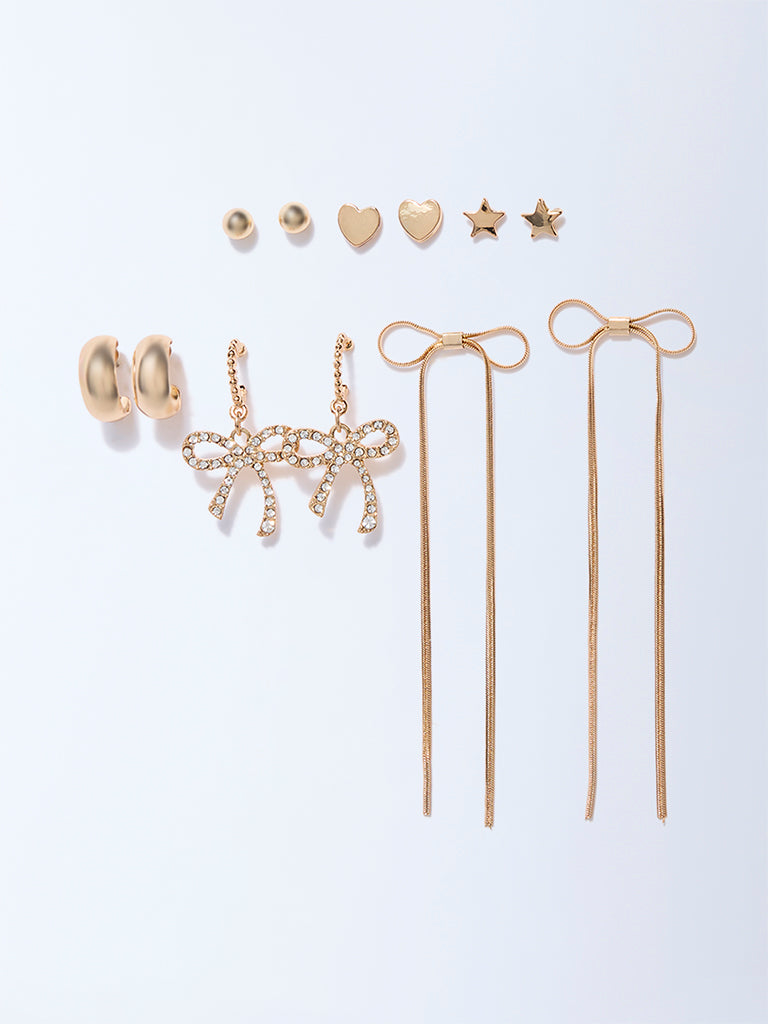 Add a little sparkle to your style routine with this versatile set from Westside Accessories. With polished hearts. stars. classic studs. and elegant bow drops. you can match your mood in seconds. The long ribbon earrings bring drama to evening looks. while the dainty pairs keep things chic for everyday wear. It’s the perfect mix of fun and femininity.