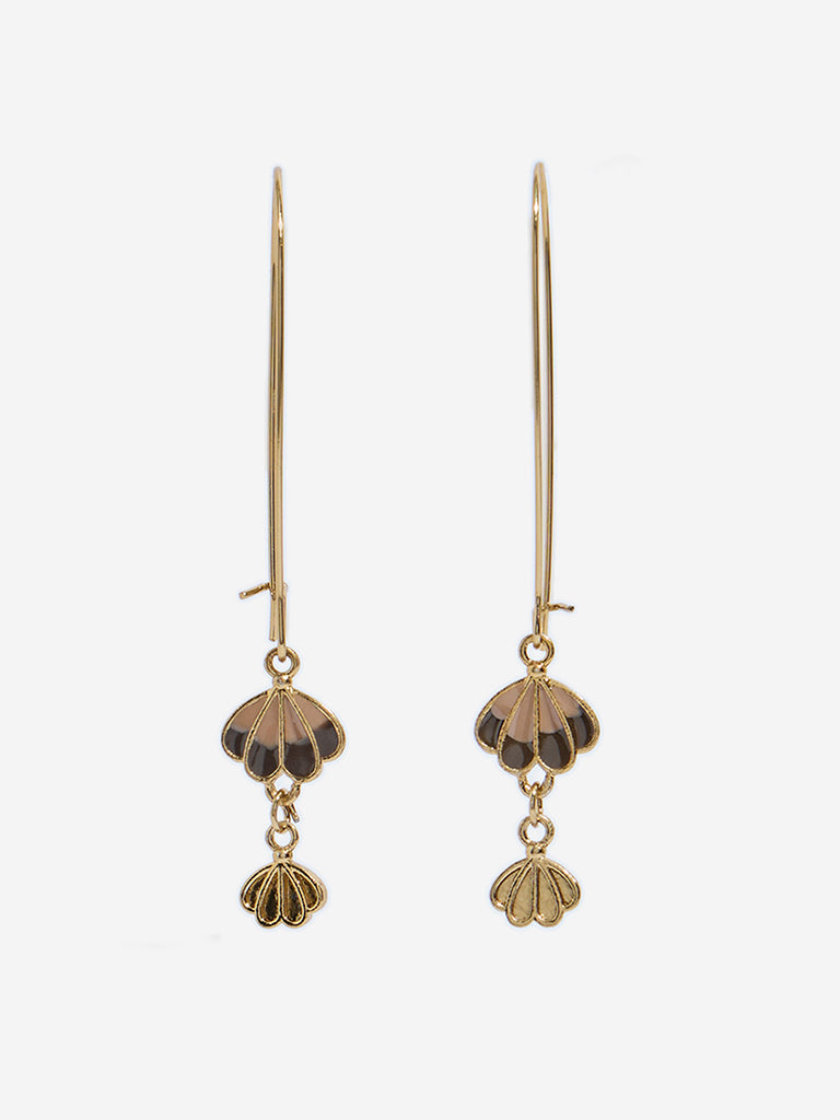 Westside Accessories Gold & Brown Floral Design Enamel Hook Earrings