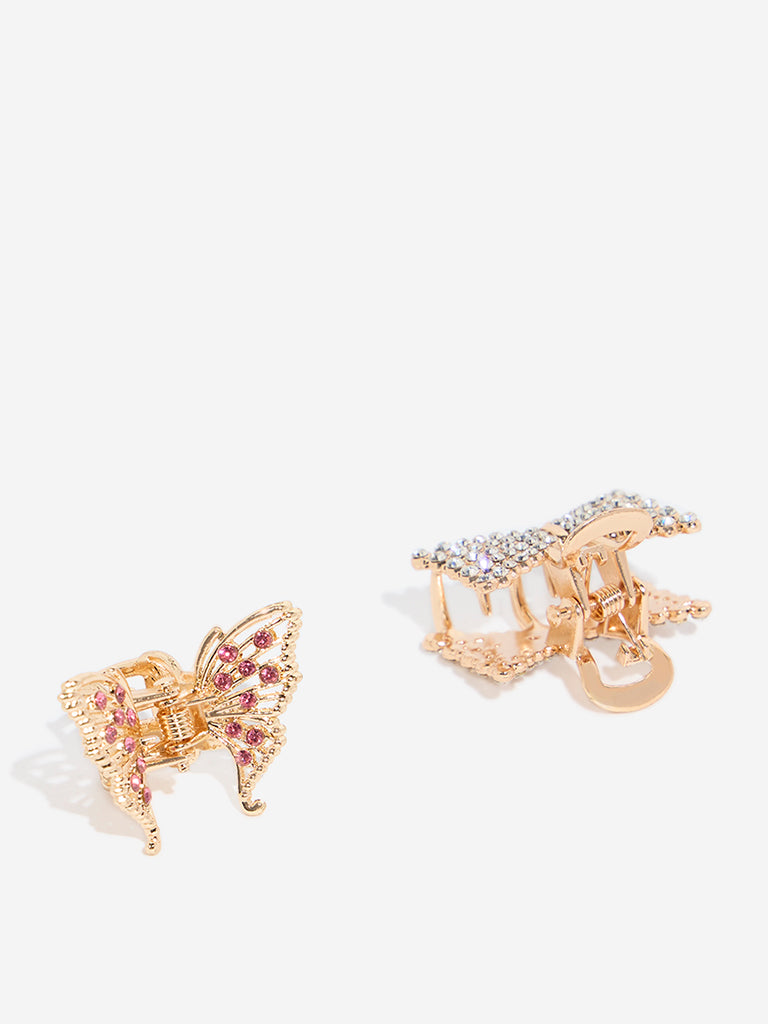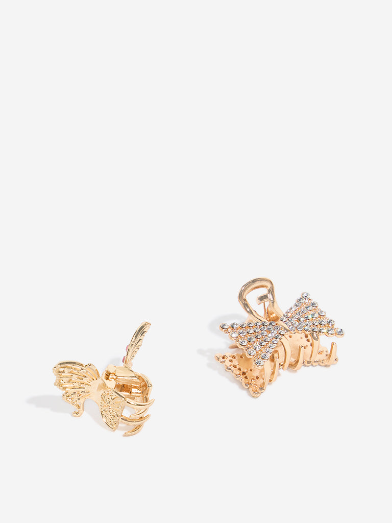 Westside Accessories Gold Diamante Embellished Butterfly Hair Clips – Pack of 2